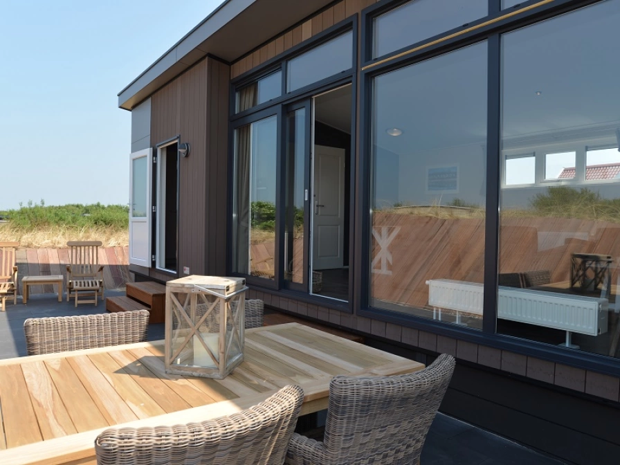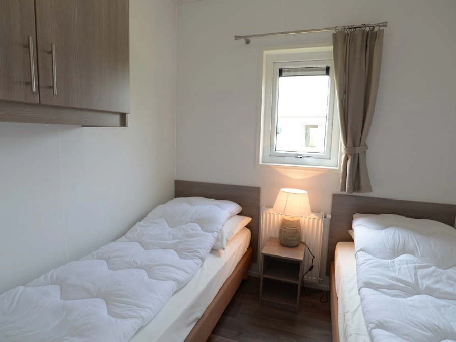 The chalet is located on the edge of the park and offers a view of the symbol of Texel: the lighthouse. The open kitchen is equipped with a fridge freezer, combi microwave, dishwasher, toaster and coffee maker. The living room has a dining area and a sitting area with a smart TV. There are two bedrooms, each with two single box-spring beds. The bathroom has a shower, sink and toilet. The chalet has a spacious, sheltered terrace on the northwest. Garden furniture is available.