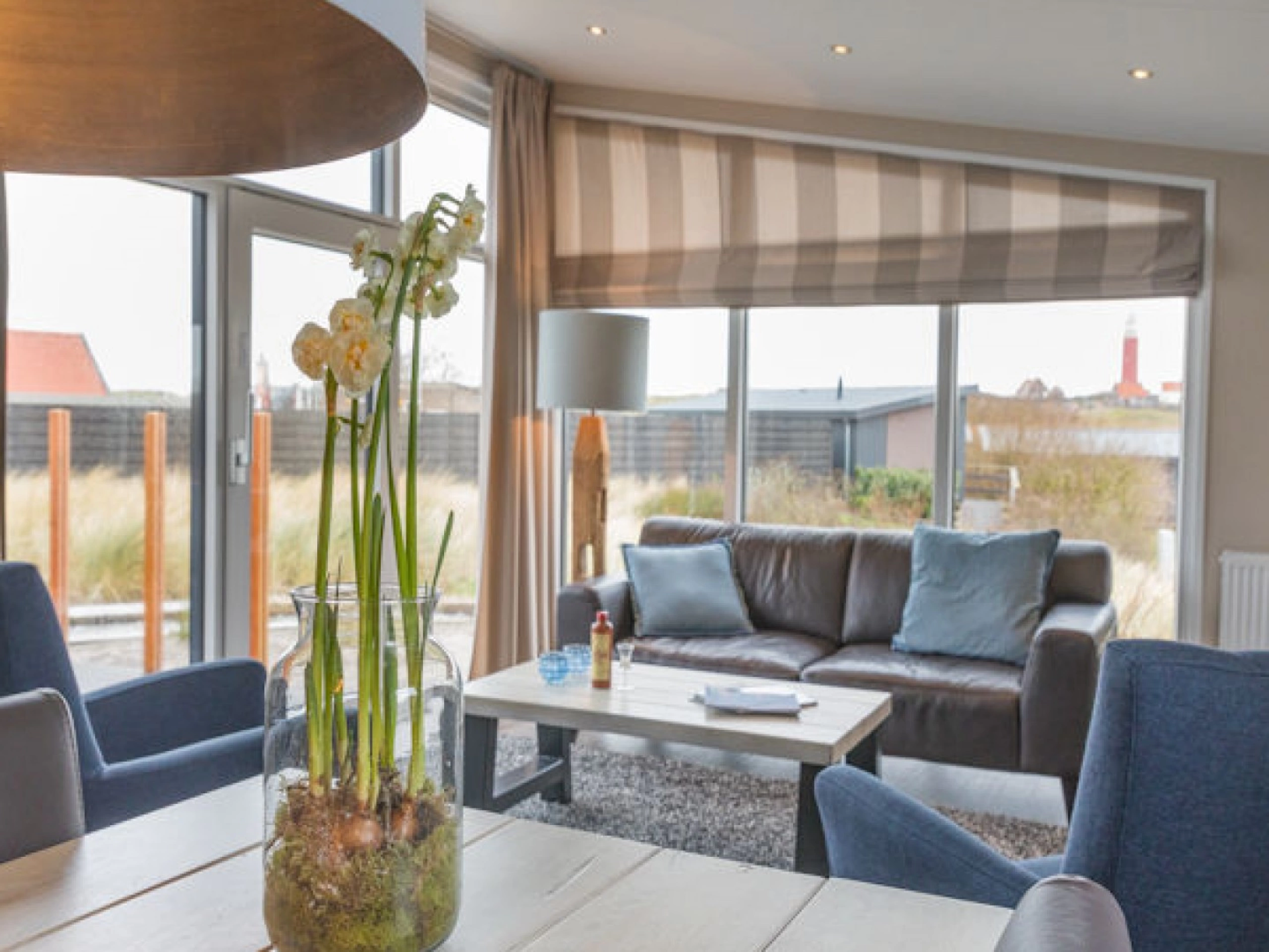 Van alle gemakken voorzien voor eHet huisjeen heerlijke tijd op Texel. Met als kers op de taart het uitzicht op de vuurtoren vanuit je luie stoel.