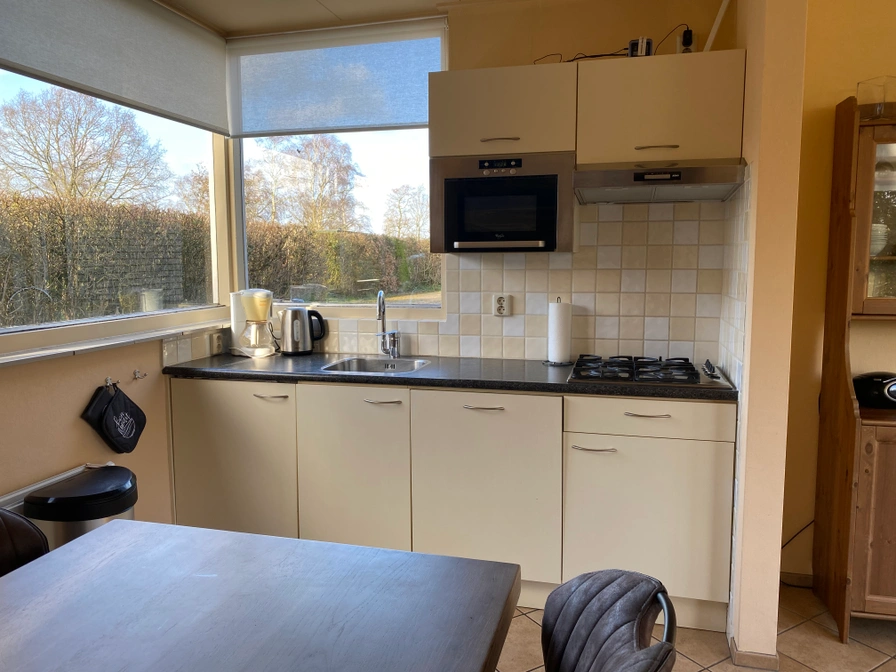 Own (bicycle) shed, washing machine and dryer. You can park directly at the bungalow.
