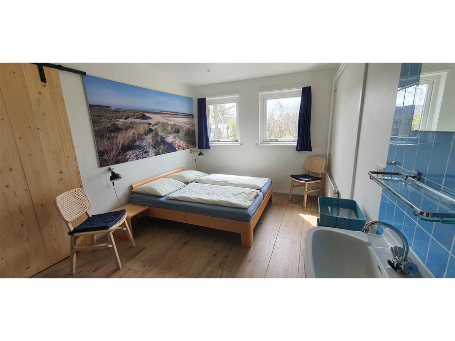 This holiday home is located in the quietly situated bungalow park Slufteroord, near the nature reserve De Slufter in the north of Texel. Through De Slufter, which is in open connection with the sea, you can walk to the vast North Sea beach in 20 minutes. Nearby you will also find the nature reserve De Muy. Here you can take beautiful walks. From your holiday address it is 6 kilometers to De Cocksdorp, the northernmost village on Texel. The seaside resort of De Koog is also 6 km by bike, but then to the south. Beautiful cycle routes through the dunes lead to both villages and you will find shops, terraces and restaurants there. In the immediate vicinity you will find a restaurant (750m) and various attractions, such as the airport, parachuting center and ice cream farm Labora.