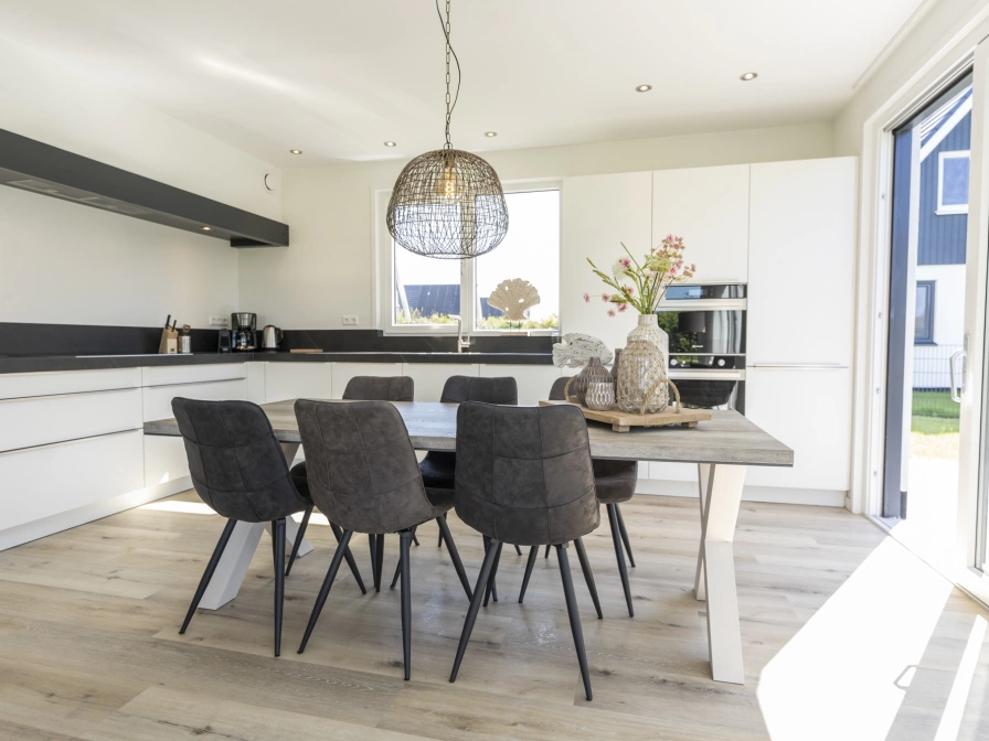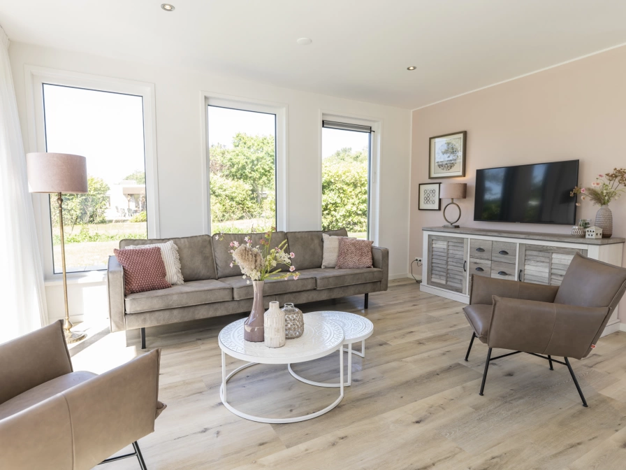 The living room of this detached villa has a dining area and a sitting area with cable TV and audio set. The kitchen is equipped with induction hob, fridge with freezer, dishwasher, microwave, oven, coffee maker, Nespresso, kettle and toaster. There is a spacious hall with toilet. On the ground floor there is 1 bedroom with two single box-spring beds and a private bathroom with shower and sink. On the upper floor are 2 bedrooms, each with two single box-spring beds. There is a bathroom with whirlpool, shower and sink. There is a separate toilet and an infrared sauna. There is underfloor heating throughout the house via a heat pump. This villa has an enclosed garden with a terrace. Garden furniture is available. There are synthetic duvets on the beds.
