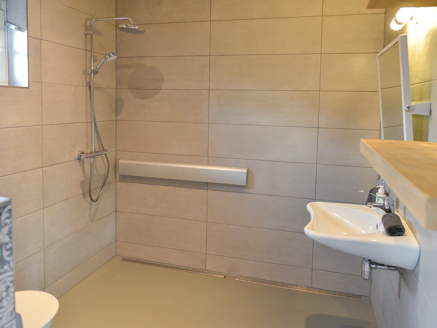 The living room of this detached holiday home with the name Sonja has a sitting area with (smart) TV and a dining area. The open kitchen is equipped with a 5-burner induction hob, oven, Smeg fridge, dishwasher, kettle and coffee maker. There is a bedroom with 1 double box-spring bed and TV. The bathroom has a non-slip floor, walk-in shower with shower seat, a washbasin that accommodates wheelchairs and a toilet with safety rails. Upstairs are two bedrooms with box-spring beds. The holiday home has a terrace. Garden furniture is available.