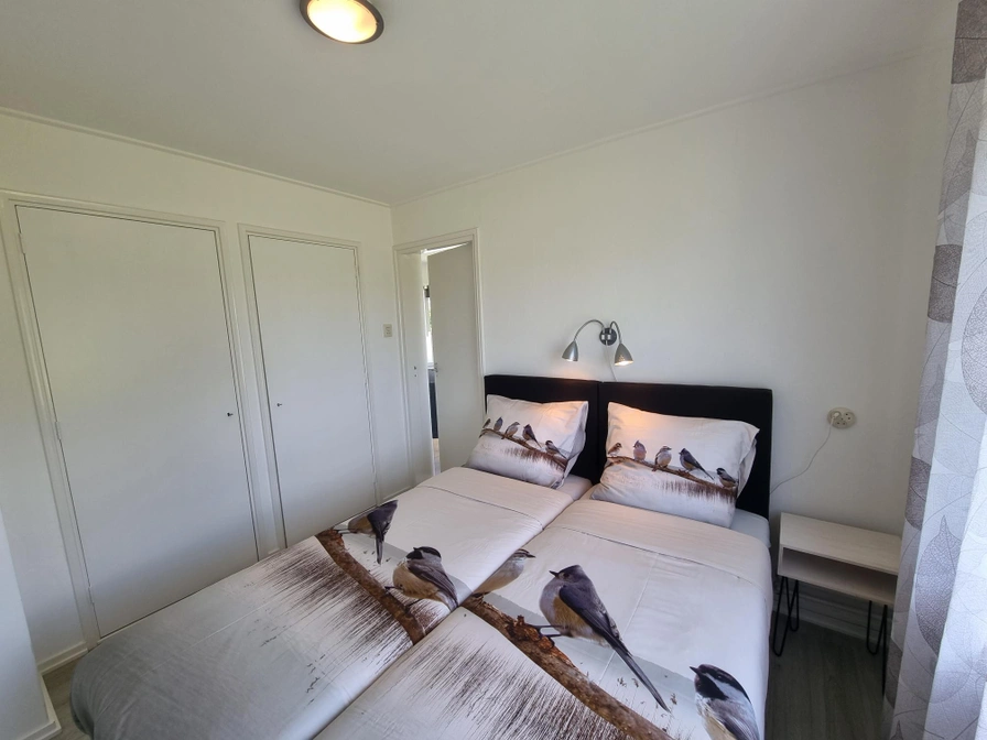 The dining table can be folded out for delicious meals with a generously set table. And, nice to know: the painting in the bedroom is a photo that the owner took himself.