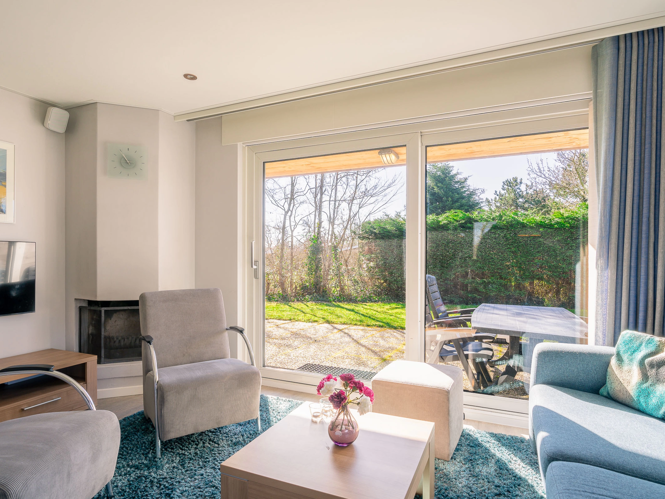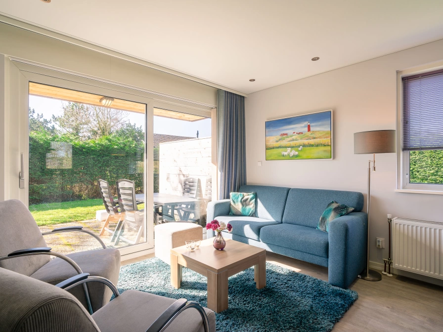 The living room of this holiday home has a sitting area with fireplace, LCD TV, stereo and DVD player and a dining area. The open kitchen is equipped with a dishwasher, combination microwave, coffee maker, Senseo, toaster and juicer. There are two bedrooms, each with 2 single box-spring beds and a sink. The bathroom has a walk-in shower and sink. The toilet is separate. There is a washing machine and dryer in the storage room. This holiday home has a spacious south-facing garden with lots of privacy. There is a terrace with garden furniture.