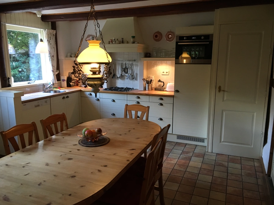 The Achterhuis is located at the rear of the farm. You enter the cozy kitchen. The kitchen is equipped with a gas hob and equipped with all the conveniences you need during your stay. There is a combination microwave, various coffee makers, dishwasher and washing machine. You can dine with six people at the dining table. Adjacent to the kitchen is the living room with a spacious sitting area, equipped with TV (extensive range of Dutch and German channels), radio and DVD player. In the hallway on the ground floor there is a bathroom with a comfortable shower and two sinks, a separate toilet and a bedroom with a spacious double bed. Via the stairs in the kitchen you reach the first floor where there are two more bedrooms. The first bedroom has a double bed. The other bedroom has two single beds. The second bathroom has a shower, sink and toilet. During your stay you have access to a lovely terrace with a very spacious backyard and you can use the garden furniture (table, chairs, parasol and barbecue).