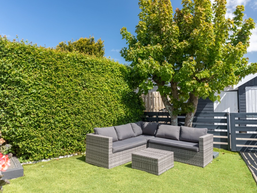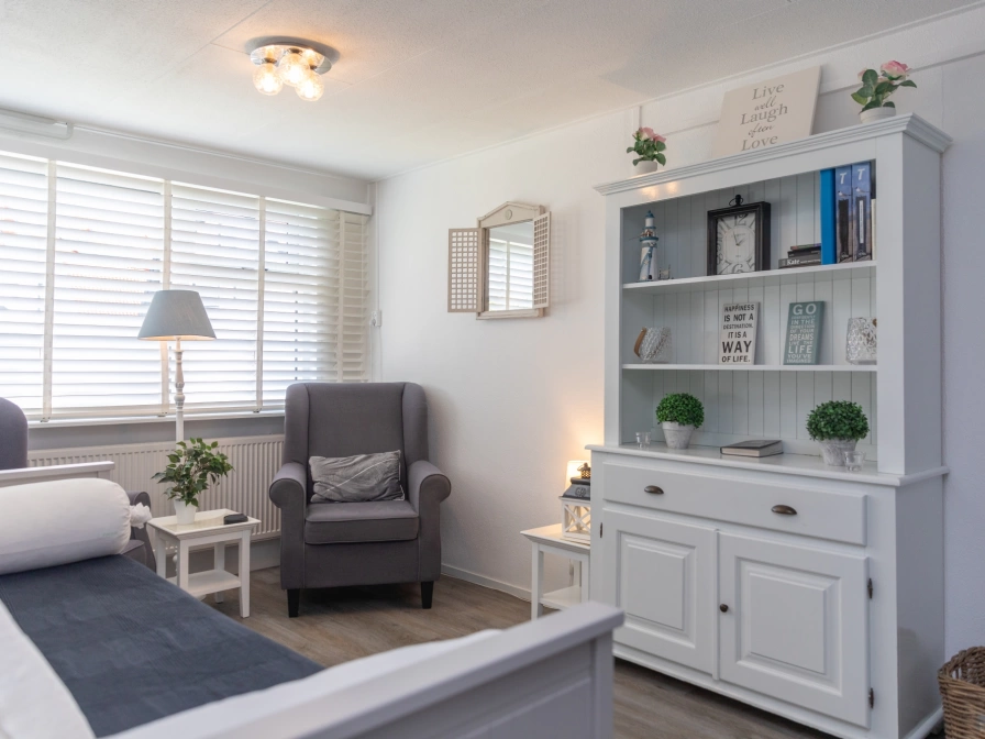 The cozy living room has a sitting area with TV, DVD player and radio/CD player. There is a separate kitchen with gas stove, refrigerator, combination microwave, kettle and Senseo. There is also a dining area. The bedroom has two single beds. There is a sofa bed in the living room. The bathroom was renovated in January 2025 and has a shower and toilet. This holiday home has an enclosed garden with terrace. Garden furniture is available.