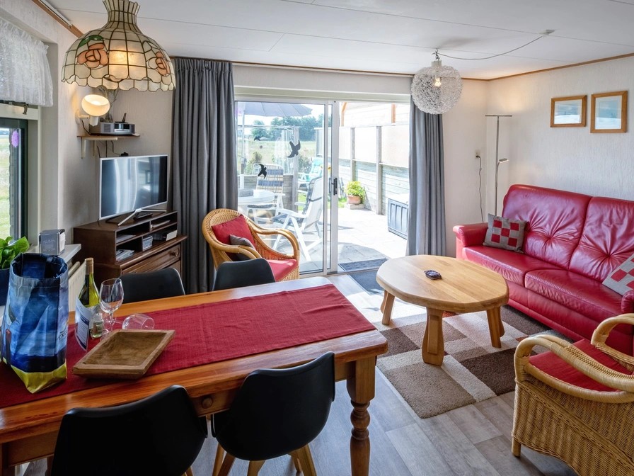 This detached holiday bungalow is located in picturesque Den Hoorn. The bungalow is simply furnished, but has a lot of privacy and a great view over the countryside. Within walking distance you will find a bicycle rental, supermarket and various restaurants with mostly local products on the menu. In the area you can enjoy cycling through the woods and dunes. You can reach the beach in 10 minutes by bike. You can walk in the nearby nature reserves De Geul and De Hors.