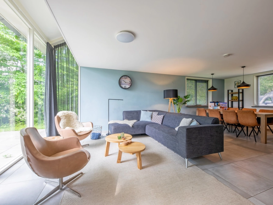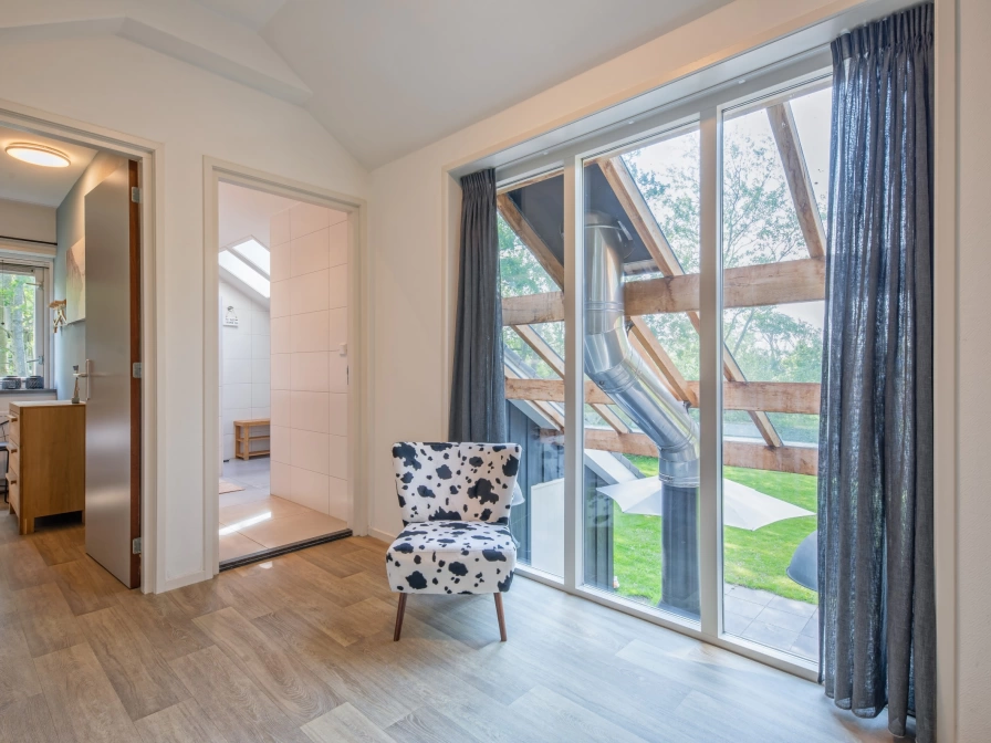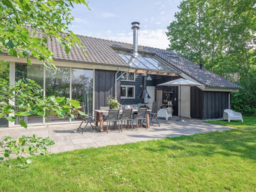 The living room of the detached holiday home Vuurcoogh has a sitting area with TV and a dining area. The open kitchen is equipped with a fridge with freezer, combi oven and dishwasher. The master bedroom has an en-suite shower room. There is a Finnish sauna with room for 8 people with access to the terrace. There is a washing machine in the storage room. There are three bedrooms on the top floor. The bathroom has a shower and bath. There is a separate toilet. The Vuurcoogh holiday home has a large, wild garden. There is a spacious terrace with patio fireplace with a fireplace that can be used as a barbecue. Garden furniture is available.