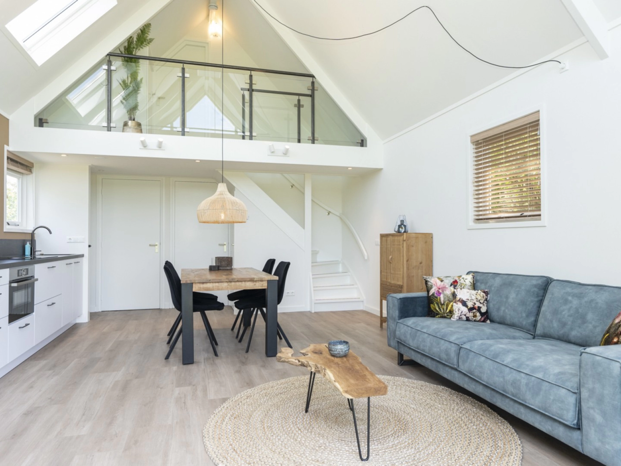 Entrance via the terrace and the living room with open kitchen. Here you have a dining area, seating area and a smart TV. The open kitchen is equipped with a combination microwave, filter coffee machine and Nespresso machine. The downstairs bedroom has two single box-spring beds. Bathroom with sink, toilet and shower. On the top floor there is a second bedroom for two people. There is garden furniture on the terrace and in the garden next to the house there is a picnic table and a cozy fire pit with a view over the fields.