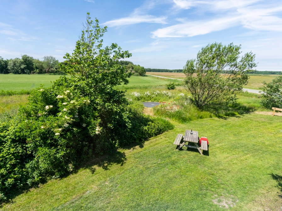 This detached holiday home is quietly located on private grounds, just outside De Cocksdorp. With two houses you share the communal garden that offers a view over the countryside. Directly opposite your holiday home are the nature reserves De Roggesloot and Dorpzicht, along which the LAW-path Noord-Hollandpad also runs. IJsboerderij Labora (Ice cream farm) is 250 meters away. At 1.5 kilometers you will find the center of De Cocksdorp, with various restaurants, a supermarket and bicycle rental. With 15 minutes cycling you are at the beach and the lighthouse. Golf course De Texelse is less than 2 kilometers away.