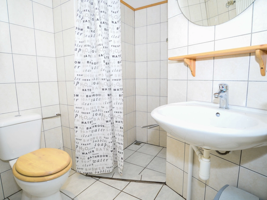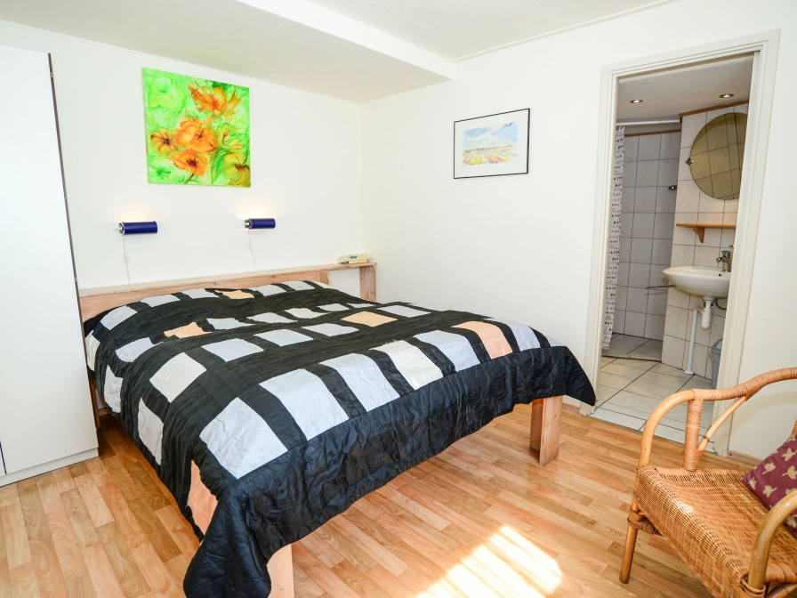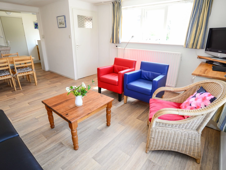There is a covered entrance. Through the hall you enter the living room, with seating with TV and radio / CD player. The semi-open kitchen is equipped with a microwave and filter coffee machine. There is also a dining area. There is a spacious bedroom with a double bed. Adjacent is a bathroom with a shower, sink and toilet. The second bedroom has two single beds and one cot. There is an extra bathroom with shower, washing facilities and toilet. This holiday home has a large garden with garden furniture.