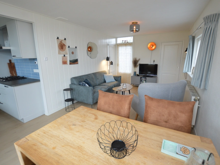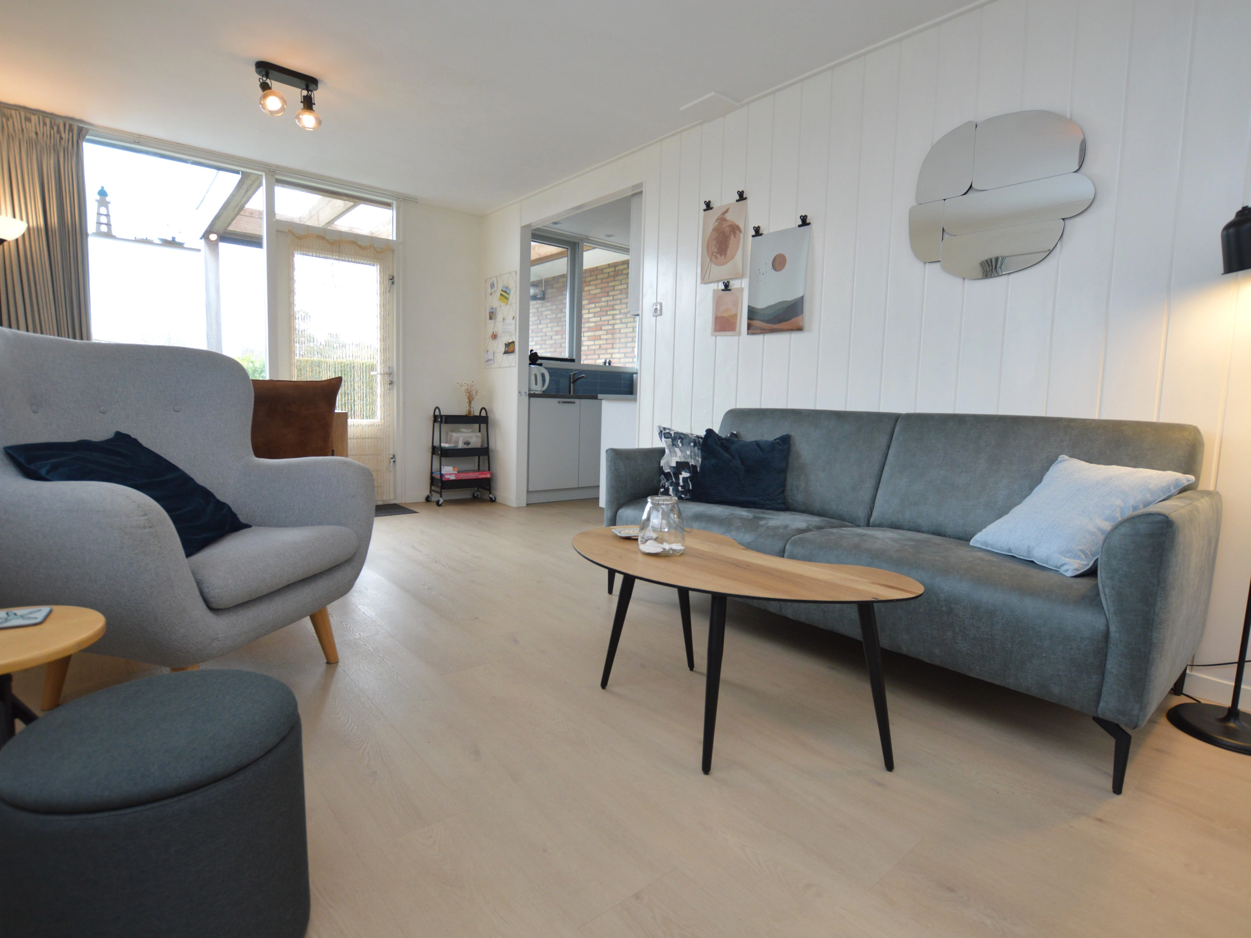 The bungalow has 2 bedrooms, 1 with a bunk bed and 1 with a double bed (2 single mattresses). There are 4 single duvets. The bathroom has a shower and toilet and there is a 2nd separate toilet. There is also a washing machine and a dryer. There is underfloor heating throughout the bungalow. The fully equipped kitchen has, among other things, a dishwasher, combination microwave, refrigerator with freezer and coffee maker. A wireless internet connection (Wi-Fi), cable TV with DVD player and radio/CD player are available. The bungalow has a garden, a covered terrace and private parking.