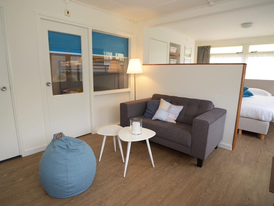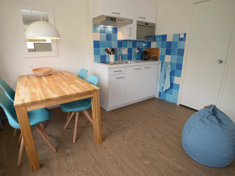 Three holiday homes have been created in the original Opduin villa, ideal for a family. On the ground floor, a private front door and a private terrace. In the house a kitchenette, bathroom (without window), large double bed, separate children's bedroom (without window) with a bunk bed, dining table and sitting area. For the longer holiday, independent with all the facilities and conveniences of the hotel. You do not have to rent bed linen, kitchen linen and towels separately or bring them yourself, this is included. The house is clean when you arrive, no cleaning is done during your stay. - Spacious (rain) shower - King size box spring bed (190x205) - Kitchenette with Nespresso machine, hob, microwave and fridge - Separate children's bedroom - Living room - Terrace