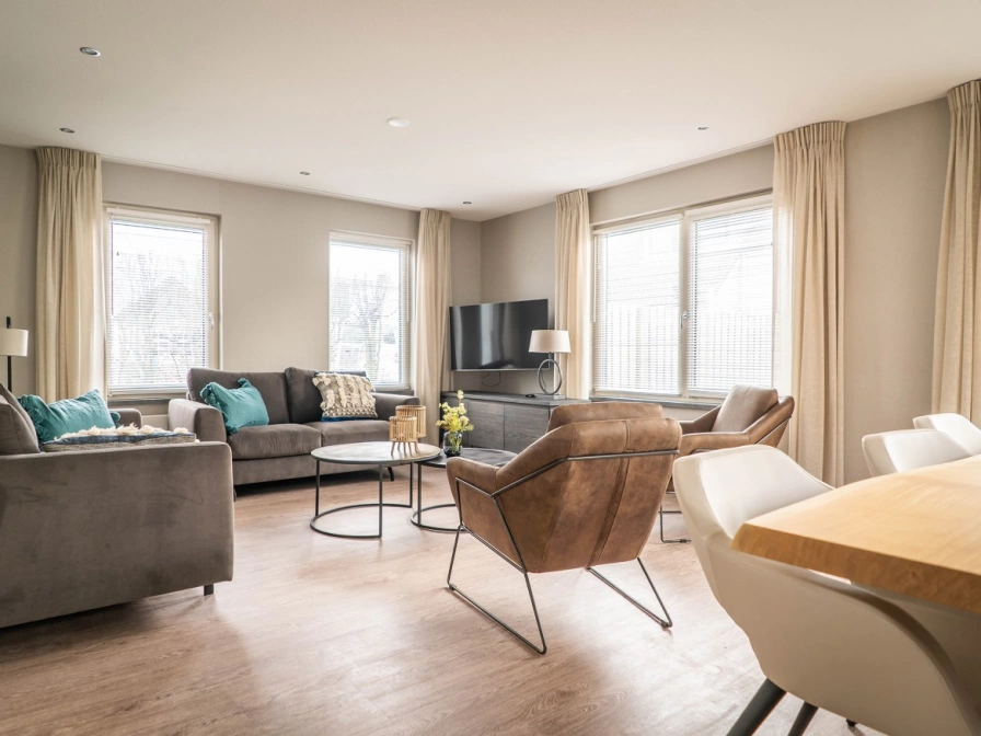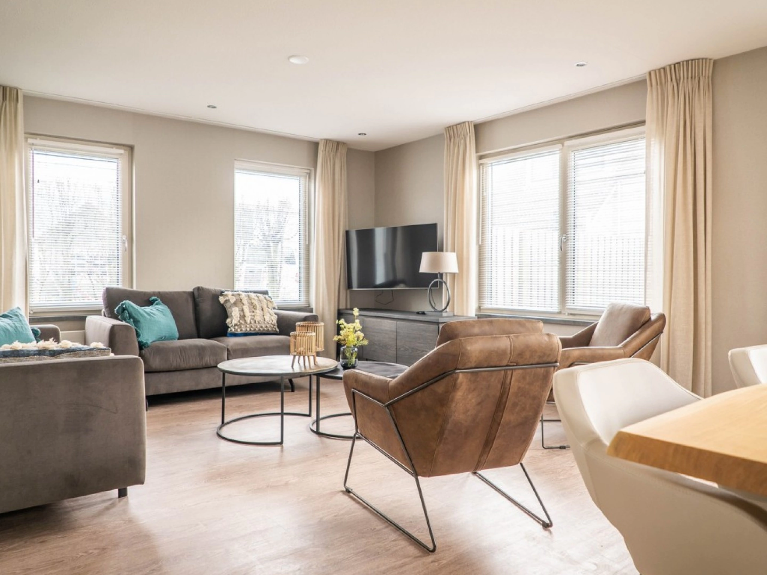 The spacious living room has a sitting area with TV. There is also a dining area. The semi-open kitchen is equipped with a dishwasher, coffee maker and microwave. There is a washing machine in the utility room. There is a bedroom with 2 single box-spring beds and a sink. There is a toilet. On the top floor are two bedrooms, each with 2 single box-spring beds. One of the bedrooms has a TV. There is a large bathroom with shower, bath and bathroom furniture. There is a separate toilet. This holiday home has a large, enclosed garden with lots of privacy. There is a terrace with garden furniture.