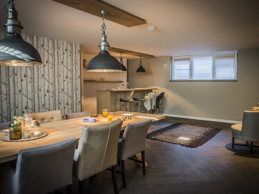 Detached holiday home 'Villa bij Zee' is quietly located in the park. The large living room has a sitting area and dining area with a decorative fireplace and TV. The open kitchen is equipped with a refrigerator with freezer, freezer, combination microwave, dishwasher, Quooker, toaster, coffee maker and Nespresso machine. There is seating at the kitchen island. Upstairs are three bedrooms, each with its own bathroom. There is a bedroom with 2 single beds and a bathroom with bath, rain shower and toilet. The second bedroom has 2 single beds and a bathroom with rain shower and sink. The third bedroom has 2 single beds and a bathroom with walk-in shower and sink. There is a separate toilet. In the basement is a bedroom with 2 single beds, a TV and a bathroom with a bath, shower and toilet. There is also an attractive group room. Villa bij Zee has a garden with two terraces. Garden furniture is available.