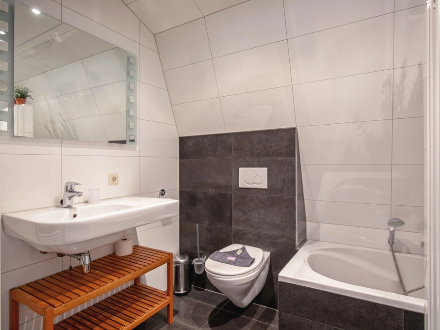 The living room has a sitting area with gas fireplace (temporarily out of use), TV, audio. The kitchen is equipped with a dishwasher, combination microwave, coffee maker, Senseo, kettle and washing machine. There is a toilet on the ground floor. On the top floor there are three bedrooms, each with two single box-spring beds. All bedrooms have a TV. The bathroom has a bath, separate shower, sink and toilet. Holiday home Villa Magnifique has a spacious, secluded garden with terrace.
