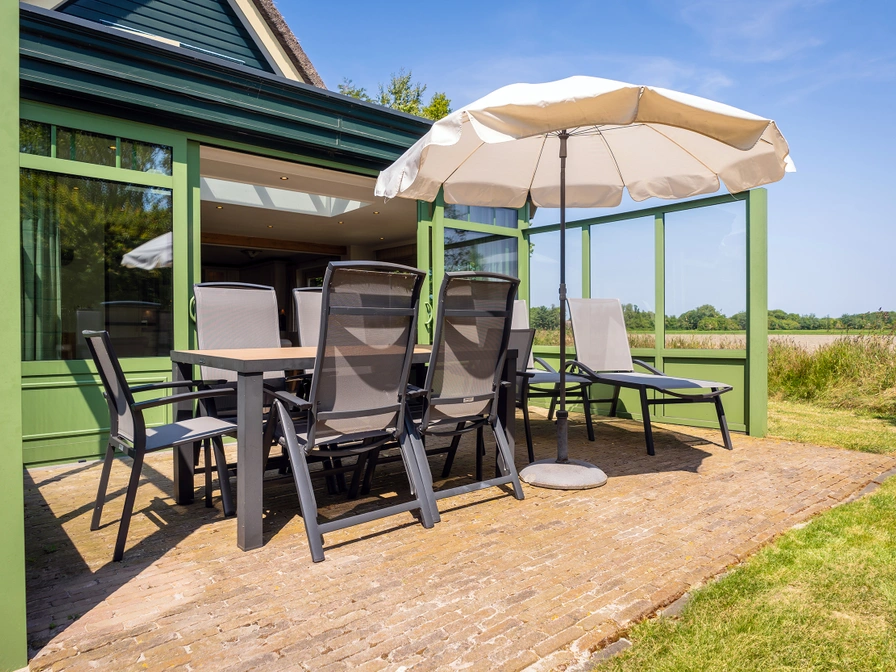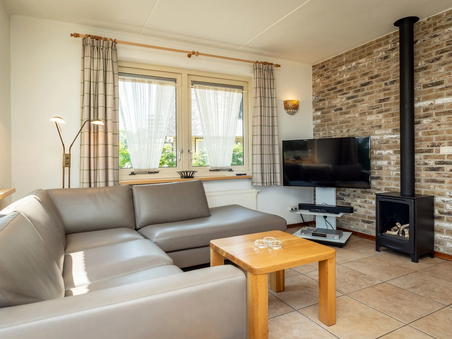 The spacious living room of this villa has a sitting area with a decorative fireplace (gas), flat screen TV, radio and DVD / CD player. The open kitchen is equipped with a grill oven, microwave, fridge freezer, dishwasher, coffee maker, Senseo, toaster, juicer, hand blender and kettle. There is a spacious dining area. On the ground floor is a bedroom with 2 single box-spring beds and a flat-screen TV. Adjacent is a bathroom with whirlpool, separate shower and bathroom furniture. There is a separate toilet in the hall. There is a washing machine and dryer in the storage room. Upstairs are two bedrooms with 2 single box-spring beds and a flat-screen TV. One of the bedrooms has a balcony. The bathroom has a double steam cabin / shower, bathroom furniture and toilet. This villa has a garden with two terraces, one on the south. Garden furniture is available.