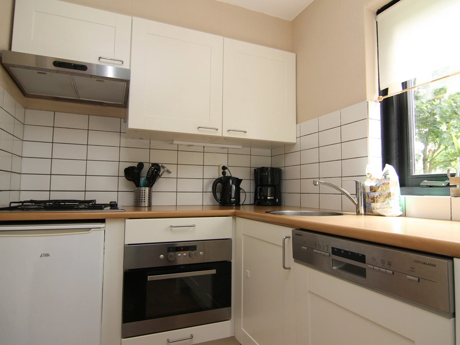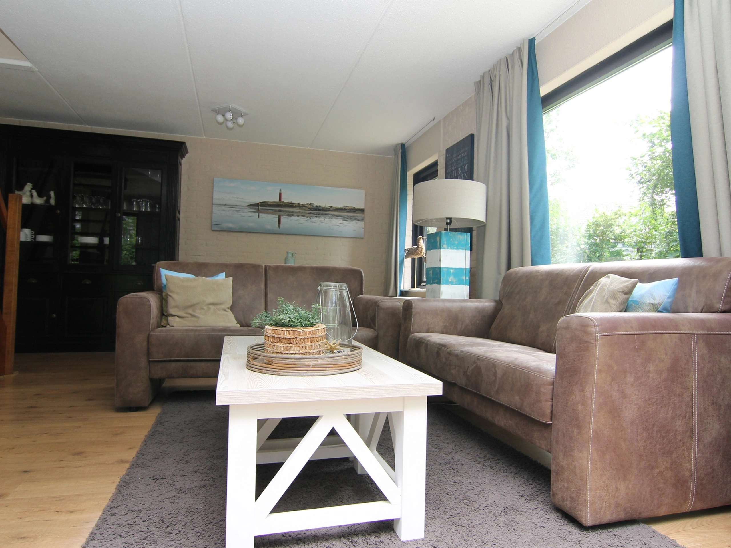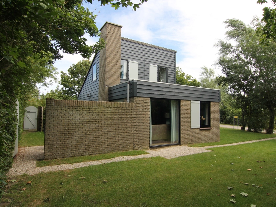 Entrance. The living room features a comfortable sitting area with a TV and a cozy dining area. The semi-open kitchen is fully equipped with a dishwasher, microwave, and refrigerator. On the ground floor, there is a bedroom with two single beds and a bathroom with a shower, sink, and toilet. Upstairs, there is a second bedroom, also with two single beds. This detached holiday home has a spacious garden with a patio and terrace, equipped with garden furniture so you can enjoy the outdoors.