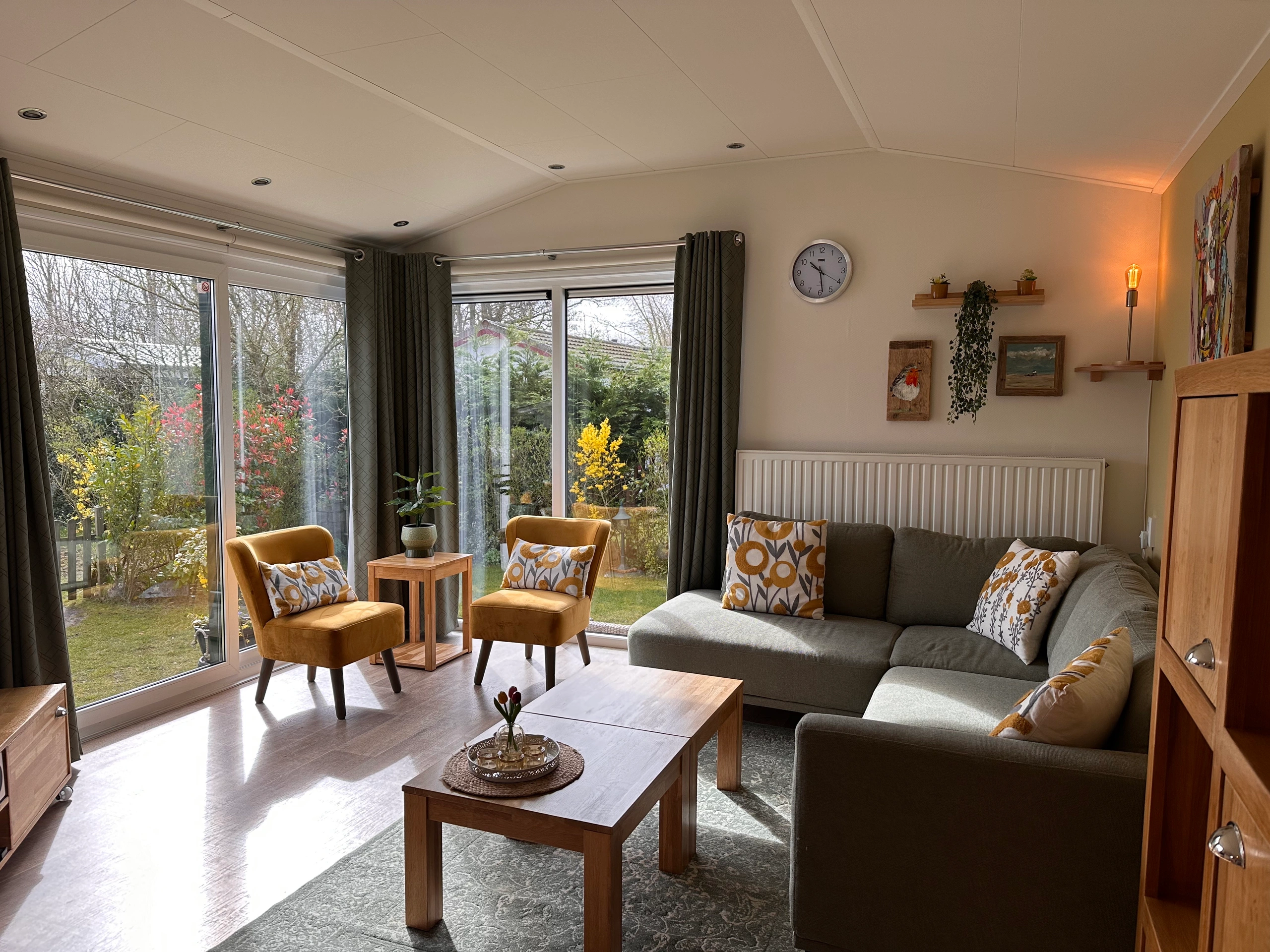 The living room has a nice sitting area with comfortable corner sofa, TV and a dining area. The large glass doors create a conservatory effect and a bright space. The kitchen is equipped with a dishwasher, combi oven, fridge with freezer, kettle, filter coffee machine and Senseo. There are two bedrooms, one with 1 double bed (140x200) with single duvets. The other bedroom has a bunk bed and a single bed. The bathroom has a shower, sink and toilet. The chalet has a beautifully landscaped, spacious garden facing south with a furnished terrace and an extra sitting area. 1 pet is allowed (except in July and August).