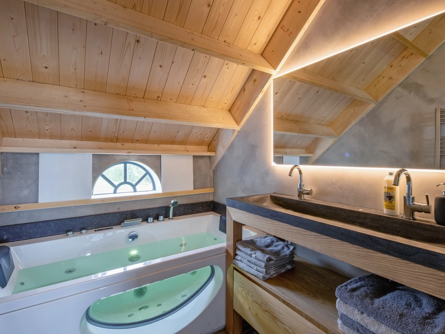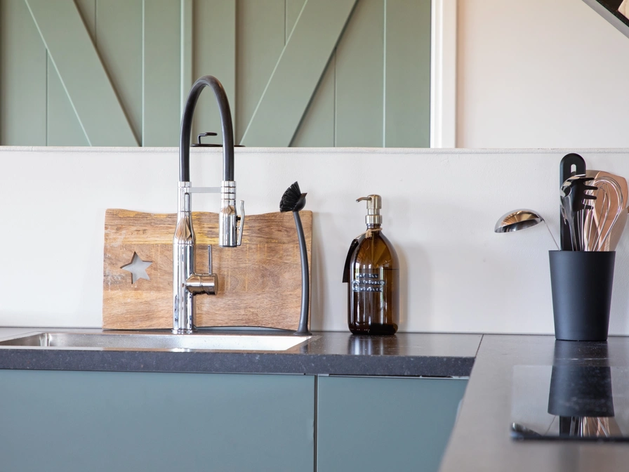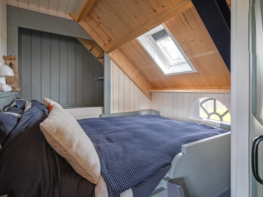 The Beaufort Mill House is all on one level, with an attractive wooden roof inside. From the outside, a completely authentic farmhouse. Light inside, a touch industrial and rural, and surprisingly spacious. Spacious living room with sitting area, wood stove and smart TV. Fully equipped kitchen. The bedroom has a king-size double bed (180 x 200 cm, with double duvet) and a view of the landscape through the glass facade. You can also sleep in the box bed with a comfortable bed (160 x 200 cm), patio doors to the living room, and a skylight. How cozy and romantic can you have it! The bathroom has a sink, large rain shower and an illuminated whirlpool bath with jets. From the living room you enter the wooden terrace over the entire length of the house through patio doors in the large glass facade. The large garden is completely fenced. The mill house is suitable for 3 people and your faithful four-legged friend can come along!