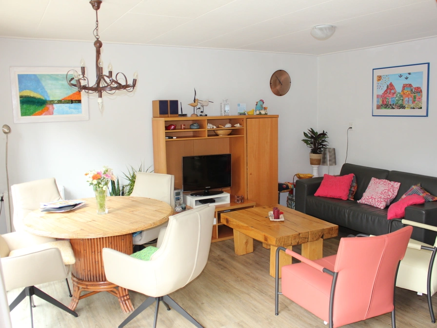 De woonkamer heeft een zithoek met tv en een eethoek. De open keuken is ingericht met vaatwasser en combimagnetron. De badkamer heeft een ligbad, aparte douche en toilet. Op de bovenverdieping zijn twee slaapkamers waarvan één met tweepersoonsbed en een wastafel. De andere slaapkamer heeft twee eenpersoonsbedden en een wastafel. Dit vakantiehuis heeft een beschutte tuin met terras. Tuinmeubilair is aanwezig.