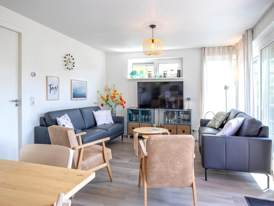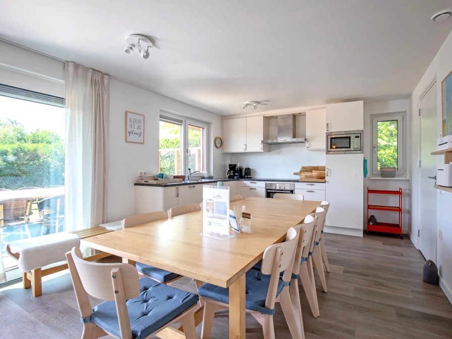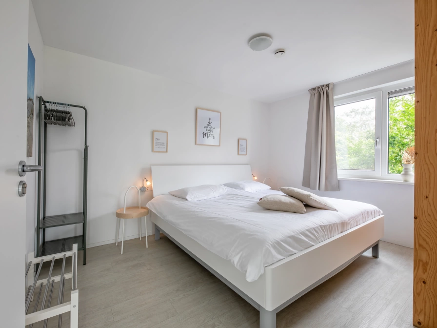 Hal met trappen naar boven en beneden. Ruime woonkamer met zithoek, TV, DVD en Radio/CD-speler met bluetooth en USB-aansluiting. Open keuken met grote eethoek, 4-pits inductiekookplaat, oven, magnetron, koelkast met vriesvak, vaatwasser, waterkoker, Nespresso, filterkoffieapparaat en Senseo. Een slaapkamer met 2 eenpersoons matrassen (100 x 200) en open doorgang naar de badkamer met drempelloze douche, in hoogte verstelbare wastafel, handdoekradiator en verhoogd toilet met wandbeugels. Op de eerste etage bevindt zich een slaapkamer met 2 eenpersoons matrassen (80x200), zithoek, TV en radio/cd-speler en balkon op het zuiden. Derde slaapkamer met 2 matrassen (80x200). Tweede badkamer met douche, wastafel, handdoekradiator en toilet. In het souterrain is een hal met wasmachine en droger. Separaat toilet. Slaapkamer met tweepersoons bed. Badkamer met ligbad, douche, wastafel en toilet bereikbaar via de vijfde slaapkamer met 2 stapelbedden. Elke badkamer is voorzien van föhn. Het vakantiehuis heeft een grote, omheinde tuin. Ruim terras met 6 ligstoelen, loungebank, Big Green Egg en Weber barbecue. Wifi. Vloerverwarming op de begane grond en de eerste verdieping. 3 privé parkeerplaatsen.