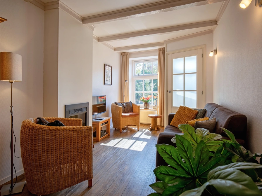 De knusse woonkamer heeft een TV, DVD, Radio-CD en een sfeerhaard. De keuken is ingericht met een vaatwasser, combi-magnetron, filterkoffiezetapparaat en Senseo. De badkamer is voorzien van douche en toilet. Via de trap in de woonkamer bereik je de twee 2-persoons slaapkamers, elk met comfortabele 1-persoons bedden (90 x 200). Je hebt een eigen, gezellige tuin met volop privacy, fietsenberging en tuinmeubilair.