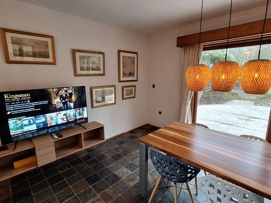 Dit vakantiehuis heeft een warm en uitnodigend interieur, doordacht ontworpen voor comfort en ontspanning. Begane grond: ruime woonkamer met gezellige zithoek, een moderne eethoek die perfect is voor gezamenlijke maaltijden, en een volledig uitgeruste kitchenette, die functionaliteit met stijl combineert. Grote ramen vullen de ruimte met natuurlijk licht, waardoor een lichte en luchtige sfeer ontstaat. Bovenverdieping: De bovenverdieping biedt drie charmante slaapkamers, elk ontworpen om comfortabel plaats te bieden aan twee gasten. Zacht beddengoed, een smaakvolle inrichting en een sereen uitzicht zorgen voor een rustgevend toevluchtsoord voor iedereen. Dit vakantiehuis is perfect voor gezinnen of stellen die op zoek zijn naar zowel comfort als stijl.