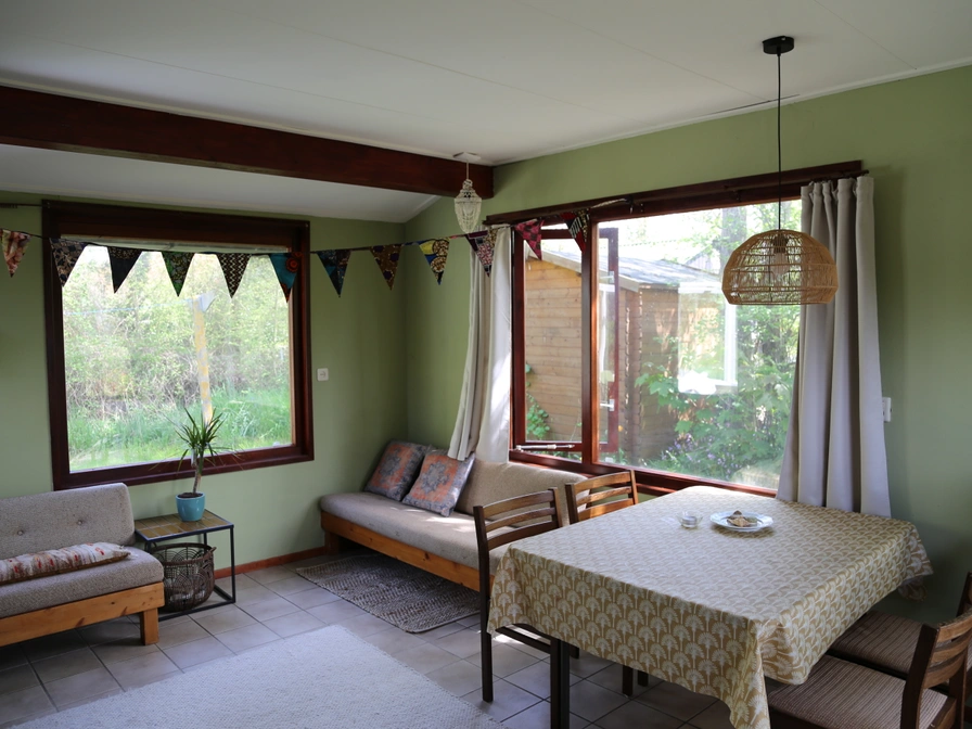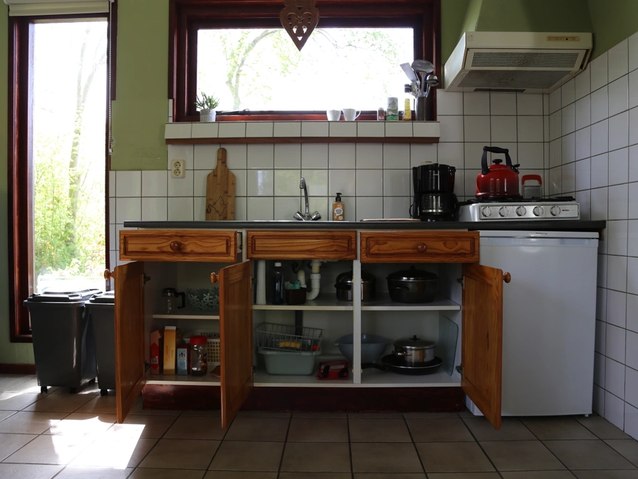 Het huisje bestaat uit een woonkamer met twee slaapkamers. In de eerste slaapkamer vind je twee comfortabele eenpersoons-boxspringbedden (200 x 80). In de tweede slaapkamer (L vormig) vind je een eenpersoonsbed (200 x 80), een klein eenpersoonsbed (190 x 70) en een hoog eenpersoonsbed (190 x 80). Het huisje dateert uit de jaren 70 zoals te zien is op de foto's. Enkele details vind je daar nog van terug zoals de verwarming via een gaskachel in de woonkamer. Daarnaast wordt er extra verwarmd met een straalkachel welke je kunt verplaatsen naar de slaapkamers. In de woonkamer vind je twee vaste banken en de keuken met 4 pits gasfornuis. Koelkast, keukenspullen, waterkoker en koffiezetapparaat (filter) zijn aanwezig.