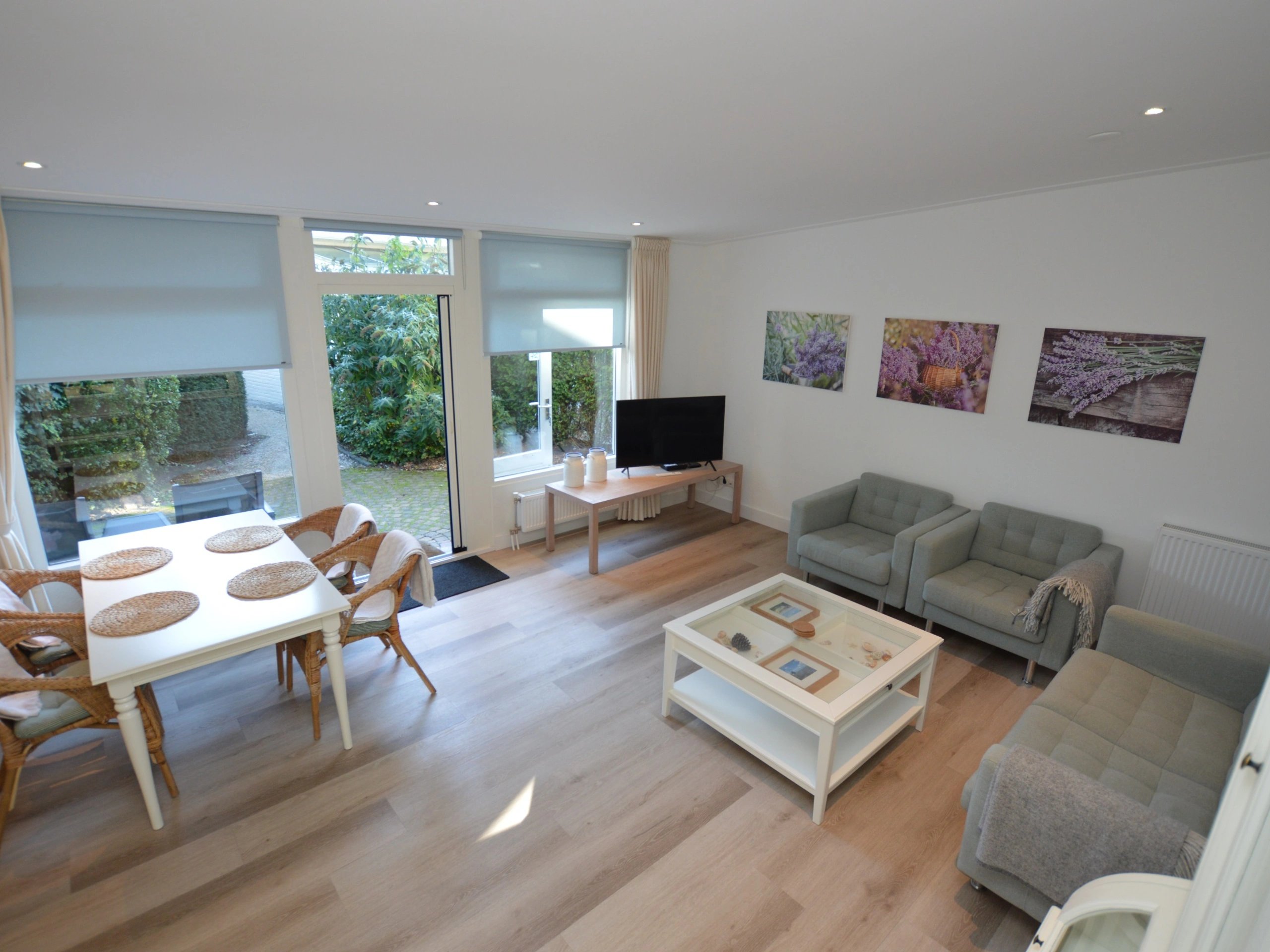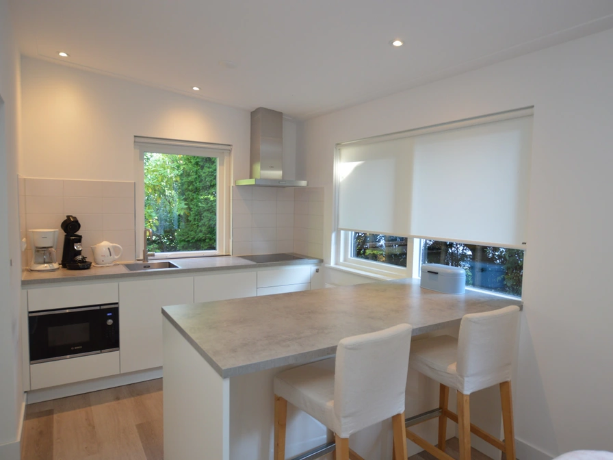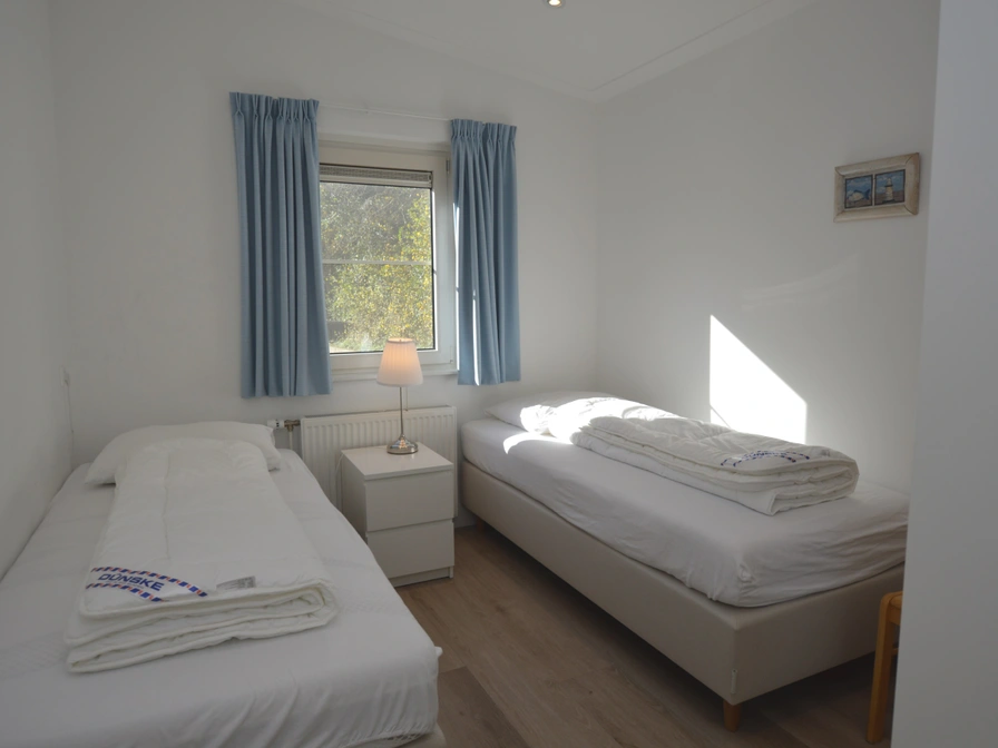 De lichte woonkamer heeft een zithoek met tv en eethoek. De keuken is volledig ingericht met o.a. combimagnetron, afwasmachine en koelkast met vriesvakje. Het huis heeft twee slaapkamers op de begane grond. In elke slaapkamer staan twee eenpersoons boxspring bedden. Er zijn vier eenpersoonsdekbedden aanwezig. In de badkamer beschik je over een douchecabine, dubbele wastafel en een toilet. Ook is er een apart toilet aanwezig. De woning heeft twee terrassen, een berging en een eigen parkeergelegenheid dichtbij het huis. Hier is ook een laadpaal voor uw elektrische auto.