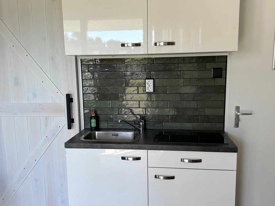 In de studio is een zeer goede bedbank aanwezig met uitstekend zit- en slaapcomfort. Er is een keukenblok met inductiekookplaat, koelkast, magnetron, airfryer, koffiezetapparaat en een zitje voor 2 personen met Smart TV. De badkamer is voorzien van een douchecabine, wastafel en toilet. Eigen terras (zon kant) met tuinmeubilair en zicht op de zonneweide met zwembad. Gratis Wifi.