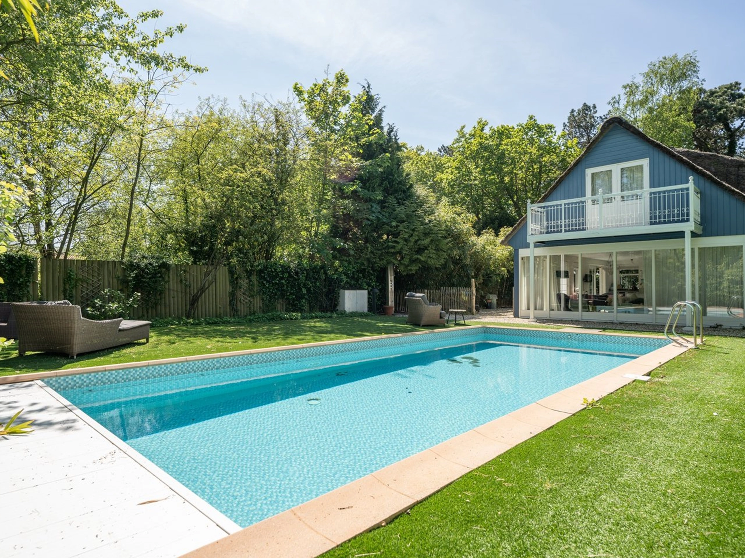 Deze vrijstaande vakantiewoning met grote tuin en privé zwembad ligt aan de rand van het bos, aan de westkant van Texel. Omgeven door de natuur van het Nationaal Park Duinen van Texel, met prachtige fiets- en wandelpaden. Het Noordzeestrand bij Paal 17 ligt op 2,5 kilometer. Badplaats De Koog ligt ook op 2,5 kilometer. Je vindt hier volop restaurants, terrassen en winkels. In de nabije omgeving zijn o.a. musea, maneges en een overdekt zwemparadijs.