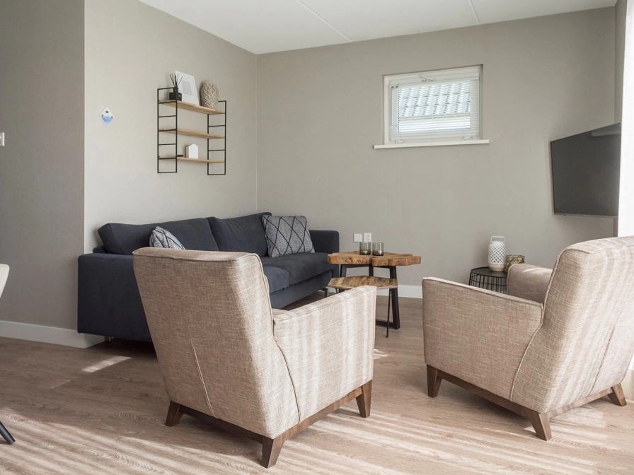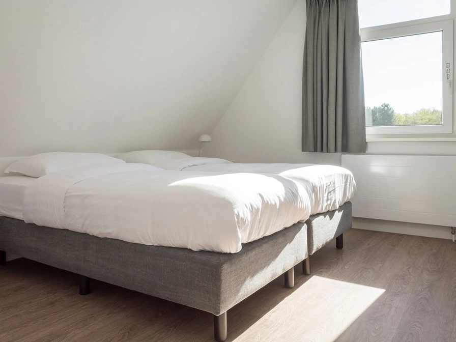 De woonkamer van dit geschakelde vakantiehuis heeft een zithoek met tv. Er is ook een eethoek. De open keuken is ingericht met combimagnetron, koelkast met vriesvak, vaatwasser, koffiezetapparaat en waterkoker. Er is een toilet aanwezig.Op de bovenverdieping zijn twee slaapkamers met elk 2 eenpersoons boxspringbedden. De badkamer heeft een douche, wastafel en toilet. Dit vakantiehuis heeft een terras met tuinmeubilair.