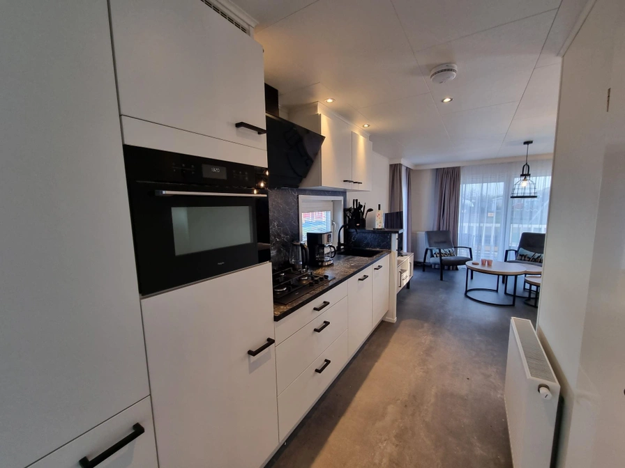 De woonkamer heeft een comfortabele zithoek met tv en een eettafel met 4 stoelen. De keuken is van alle gemakken voorzien: een 4-pits kookplaat op gas, koelkast met vriesgedeelte, combimagnetron, vaatwasser, waterkoker, koffiezetapparaat, broodrooster en verdere keukenbenodigdheden. Het chalet heeft 2 slaapkamers. De ‘ouderslaapkamer’ heeft een bed van 1.60 x 2.00 m. (2 boxsprings van 0.80 x 2.00) met twee eenpersoons dekbedden. De tweede slaapkamer heeft twee eenpersoonsbedden van 0.80 x 2.00 m. De badkamer is voorzien van douchecabine van 0.80 x 1.20 m., toilet, wastafel en designradiator. Dit chalet beschikt over een veranda aan de voor- en achterzijde en is bij uitstek geschikt voor gezinnen met kinderen. Vanaf de veranda aan de voorzijde is er uitzicht over het speelpark.