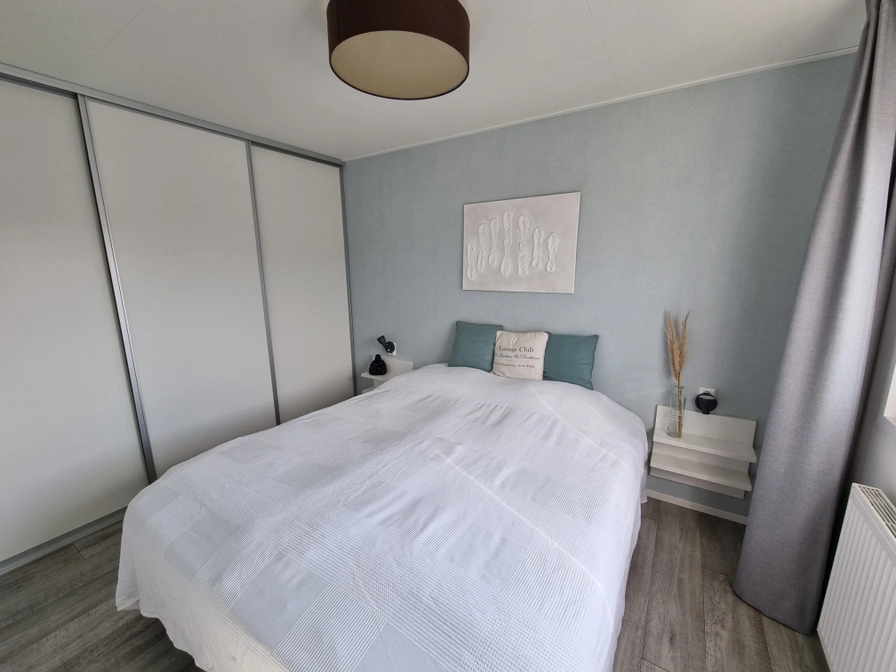 De woonkamer is voorzien van een zithoek met tv en een eethoek met vier stoelen. De keuken is uitgerust met een 4-pits gasfornuis, koelkast met vriesvak, koffiezetapparaat, een waterkoker en alle verdere benodigdheden. Er zijn twee slaapkamers waarvan 1 met tweepersoonsbed (160 x 200) met twee eenpersoons dekbedden. De andere slaapkamer heeft 2 eenpersoonsbedden (80 x 200). De badkamer heeft een ruime douche, toilet en wastafel. Het chalet wordt verwarmd d.m.v. CV. Verder beschikt het chalet over een ruim terras voorzien van tuinmeubilair.