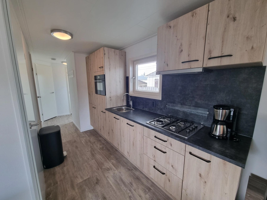 De woonkamer is voorzien van een zithoek met tv en een eethoek met zes stoelen. De keuken is uitgerust met een 4-pits gasfornuis, koelkast met vriesvak, koffiezetapparaat, een waterkoker en alle verdere benodigdheden. Er zijn drie slaapkamers, waarvan 1 met twee bedden tegen elkaar aan met twee eenpersoons dekbedden. De middelste slaapkamer heeft 2 eenpersoonsbedden en de laatste slaapkamer heeft een stapelbed. De badkamer heeft een ruime douche, toilet en wastafel. Er is een 2e toilet aanwezig. Het chalet wordt verwarmd door middel van centrale verwarming. Verder beschikt het chalet over een terras voorzien van tuinmeubilair.