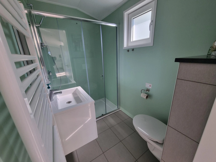Entree, lichte woonkamer met een comfortabele bank en een eettafel met 4 stoelen. Open keuken die van alle gemakken is voorzien. De grote slaapkamer heeft een tweepersoonsbed met aparte matrassen en dekbedden en de kleine slaapkamer 2 eenpersoonsbedden uit elkaar. Bij de slaapkamers zijn rolgordijnen aanwezig die bediend worden met een afstandsbediening. In de badkamer is een ruime inloopdouche, wastafel en toilet. Heerlijke tuin op het zuiden met terras en tuinmeubels.