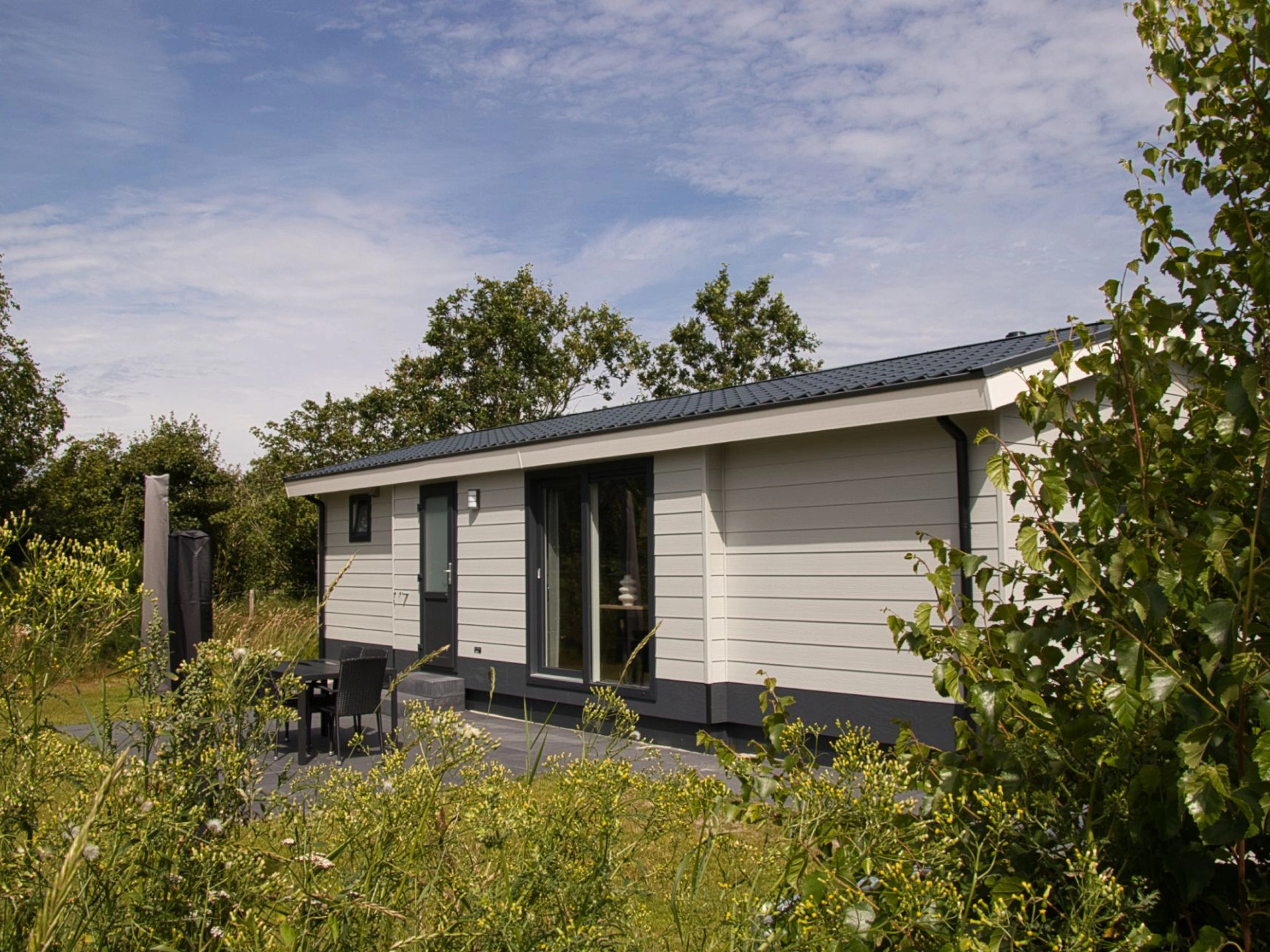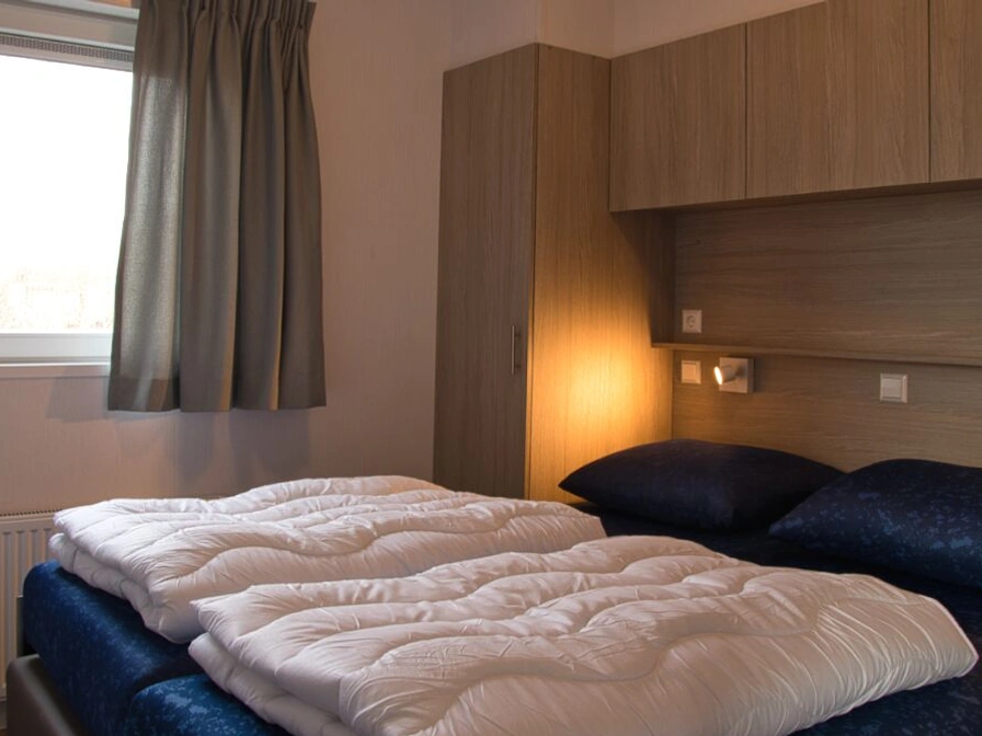 Dit chalet staat op een ruime en rustige plek op het Akkerveld. De ruime, lichte woonkamer is voorzien van zithoek en een eethoek. De open keuken is compleet ingericht en voorzien van een vaatwasser, combimagnetron, 4-pits kooktoestel, koelkast met vriesvak, filterkoffiezetapparaat en waterkoker. Er zijn twee slaapkamers waarvan een met 1 tweepersoonsbed (2 matrassen van 80 x 200 cm). De andere slaapkamer heeft 1 eenpersoons boxspring bed (80 x 200) en een stapelbed (80 x 200). Op alle bedden liggen eenpersoons dekbedden en kussens. De badkamer heeft een douche, wastafel en toilet. Er is een inpandige berging aanwezig. In de tuin bevindt zich een terrasje met tuintafel, terrasstoelen en een parasol. De chalets staan op een autovrij terrein, de parkeerplaatsen zijn in de buurt waar bagagekarren staan voor je bagage.