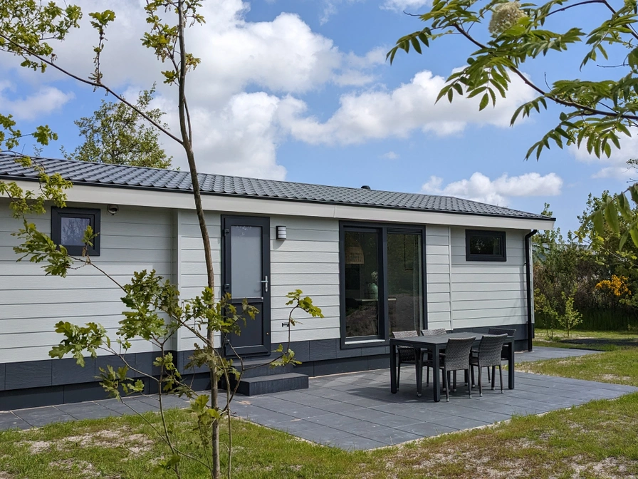 Dit chalet staat op een ruime en rustige plek op het Akkerveld. De ruime, lichte woonkamer is voorzien van zithoek en een eethoek. De open keuken is compleet ingericht en voorzien van een vaatwasser, combimagnetron, 4-pits kooktoestel, koelkast met vriesvak, filterkoffiezetapparaat en waterkoker. Er zijn twee slaapkamers waarvan een met 1 tweepersoonsbed (2 matrassen van 80 x 200 cm). De andere slaapkamer heeft 1 eenpersoons boxspring bed (80 x 200) en een stapelbed (80 x 200). Op alle bedden liggen eenpersoons dekbedden en kussens. De badkamer heeft een douche, wastafel en toilet. Er is een inpandige berging aanwezig. In de tuin bevindt zich een terrasje met tuintafel, terrasstoelen en een parasol. De chalets staan op een autovrij terrein, de parkeerplaatsen zijn in de buurt waar bagagekarren staan voor je bagage.