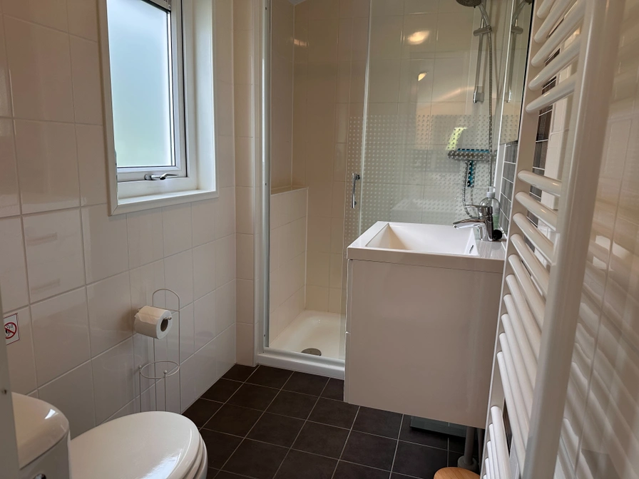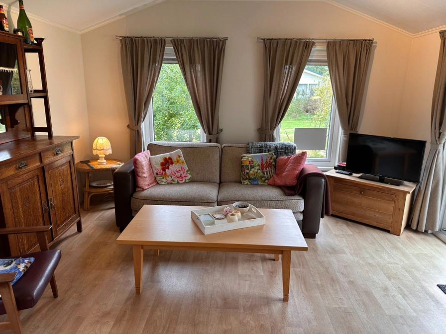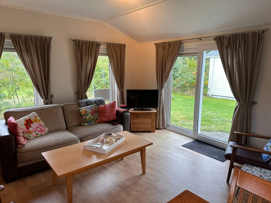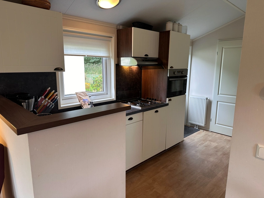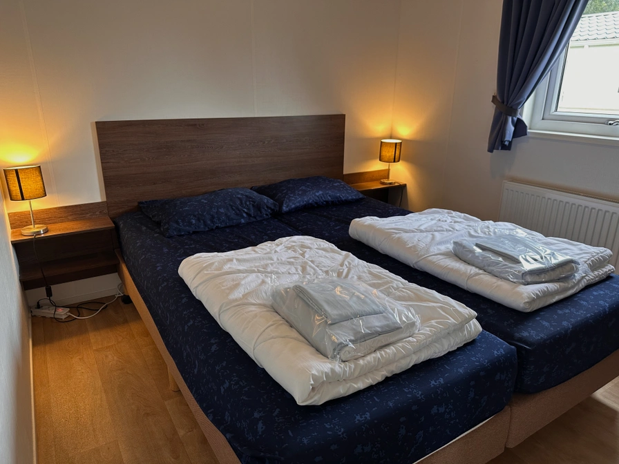 Entree, woonkamer met eethoek en zithoek met tv. Open keuken met combimagnetron en vaatwasser. Slaapkamer met 1 tweepersoons bed, bestaande uit 2 eenpersoonsmatrassen. Tweede slaapkamer met 2 eenpersoons bedden. De badkamer heeft een douche en toilet. Het chalet heeft een ruime tuin met terras. Tuinmeubilair is aanwezig.