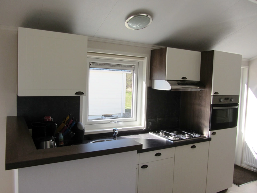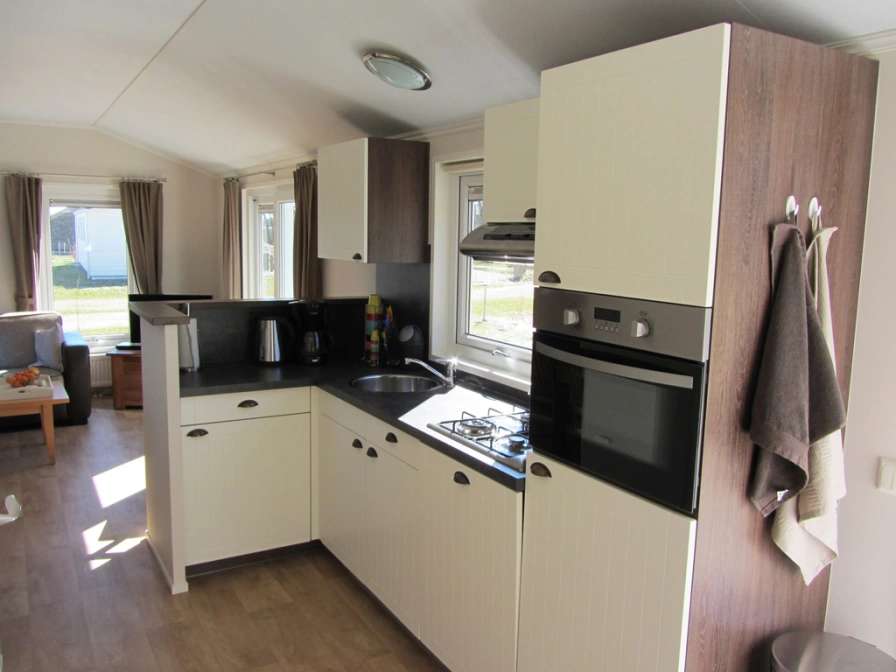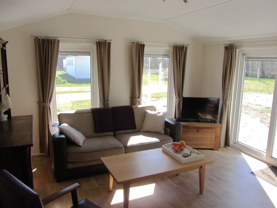 Entree, woonkamer met eethoek en zithoek met tv. Open keuken met ingericht met combimagnetron en vaatwasser. Slaapkamer met 1 tweepersoons bed. Tweede slaapkamer met 2 eenpersoons bedden. De badkamer heeft een douche en toilet. Het chalet heeft een ruime tuin met terras. Tuinmeubilair is aanwezig.
