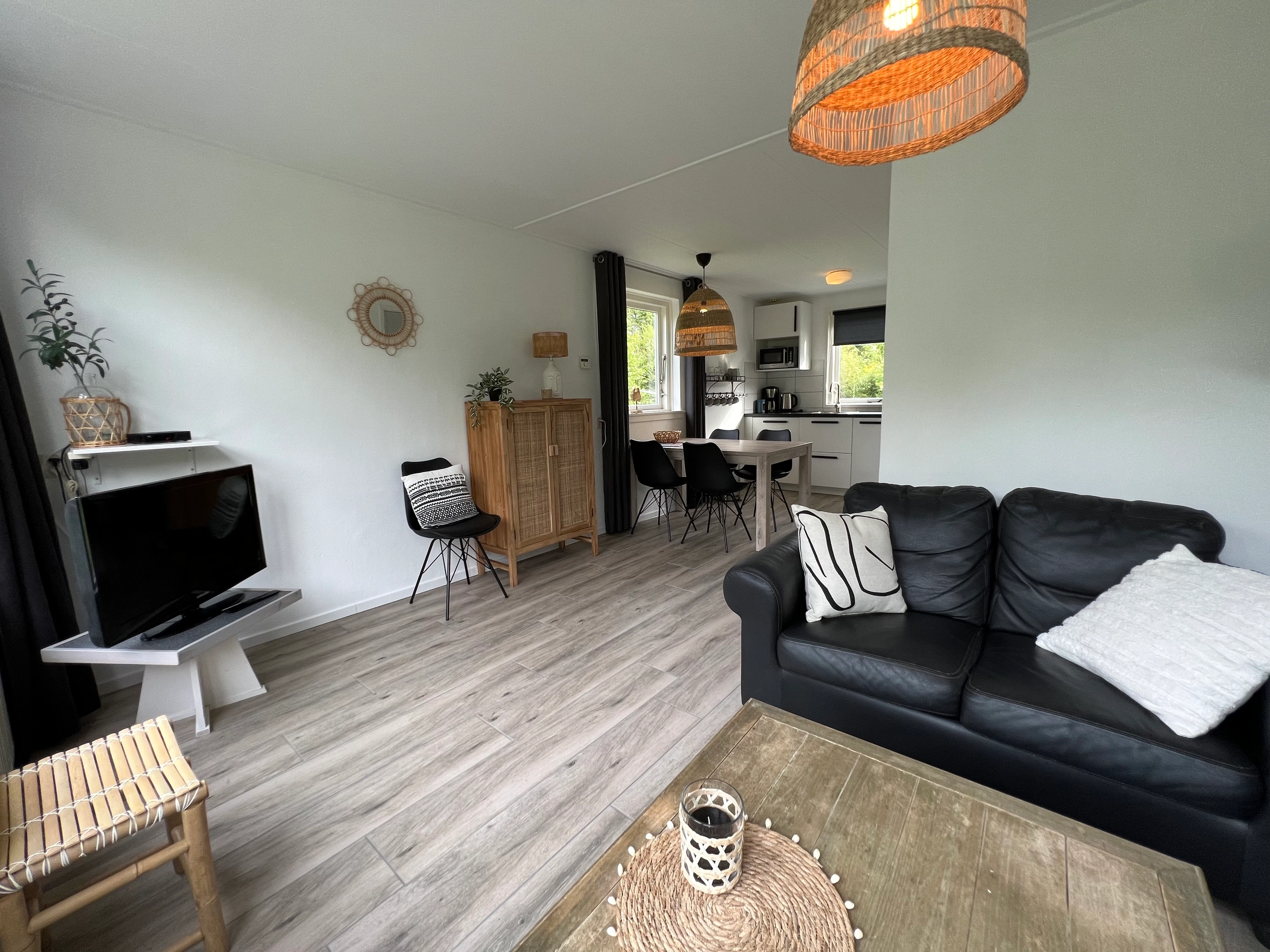 De woonkamer heeft een zithoek met tv. Er is ook een eethoek. De open keuken is ingericht met een combimagnetron, vaatwasser, waterkoker, koffiezetapparaat en Nespresso. Er is een badkamer met ligbad en toilet. Op de bovenverdieping zijn twee slaapkamers met elk twee eenpersoons-boxspringbedden (90 x 200). Dit vakantiehuis heeft een tuin met terras. Er is tuinmeubilair aanwezig.