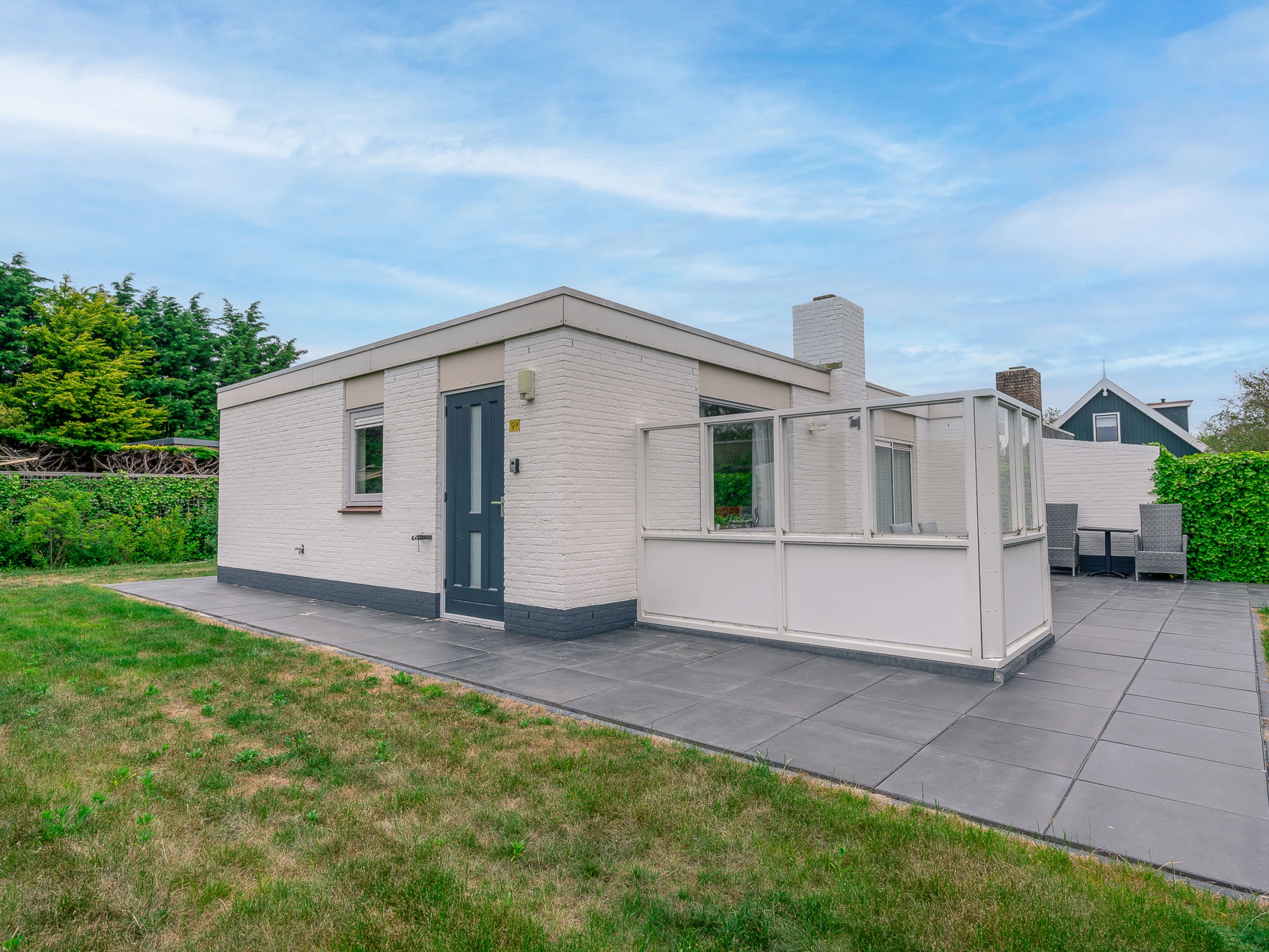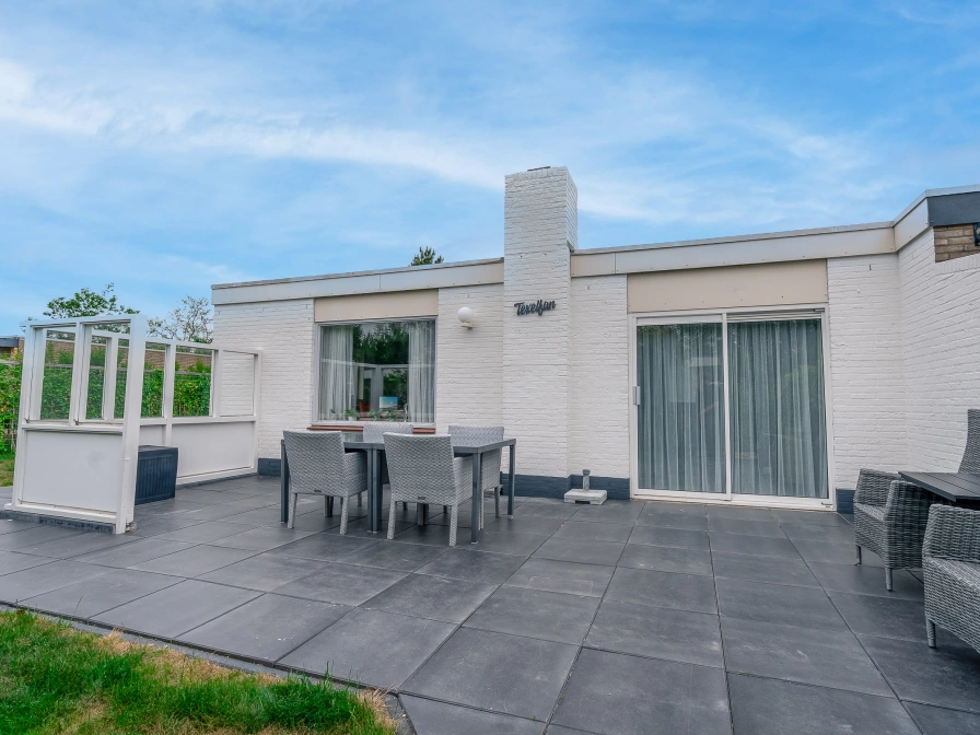 De woonkamer van deze geschakelde bungalow heeft een eethoek en een zithoek met sfeerhaard en 43-inch smart-tv. De open keuken is volledig uitgerust met o.a. inductiekookplaat, vaatwasser, combimagnetron, Dolce Gusto, waterkoker en koffiezetapparaat. De twee slaapkamers hebben elk 2 eenpersoons boxspringbedden. Een van de slaapkamers heeft televisie. De badkamer heeft douche, wastafel en toilet. Vanuit de zithoek heb je een mooi uitzicht op de ruime tuin met veel groen en een fijn terras met tuinmeubels en relaxstoelen.
