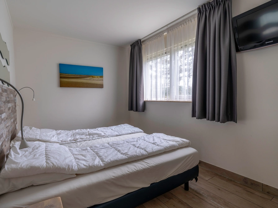 Het kleinschalige bungalowpark 't Luwe Land (voorheen So What Oost) ligt aan de rand van het bos en de duinen van Nationaal Park Duinen van Texel. Het uitgestrekte Noordzeestrand ligt op ongeveer 2,5 kilometer en is prima fietsend of lopend te bereiken. Door het natuurgebied, dat de hele westkust van Texel beslaat, lopen prachtige fiets- en wandelroutes. In de directe omgeving vind je een fietsenverhuur, restaurant en verschillende musea. De bushalte ligt praktisch voor de deur van het park. Badplaats De Koog ligt op zo'n 3,5 kilometer. De 'hoofdstad' van Texel, Den Burg vind je op ruim 4 kilometer. In beide dorpen zijn volop winkels, restaurants en terrassen.Indeling: De woonkamer van deze geschakelde bungalow heeft een eethoek en een zithoek met sfeerhaard en 43-inch smart-tv. De openkeuken is volledig uitgerust met o.a. inductiekookplaat, vaatwasser, combimagnetron, Dolce Gusto, waterkoker en koffiezetapparaat. De twee slaapkamers hebben elk 2 eenpersoons boxspringbedden. Een van de slaapkamers heeft televisie. De badkamer heeft douche, wastafel en toilet. Vanuit de zithoek heb je een mooi uitzicht op de ruime tuin met veel groen en een fijn terras met tuinmeubels en relaxstoelen.