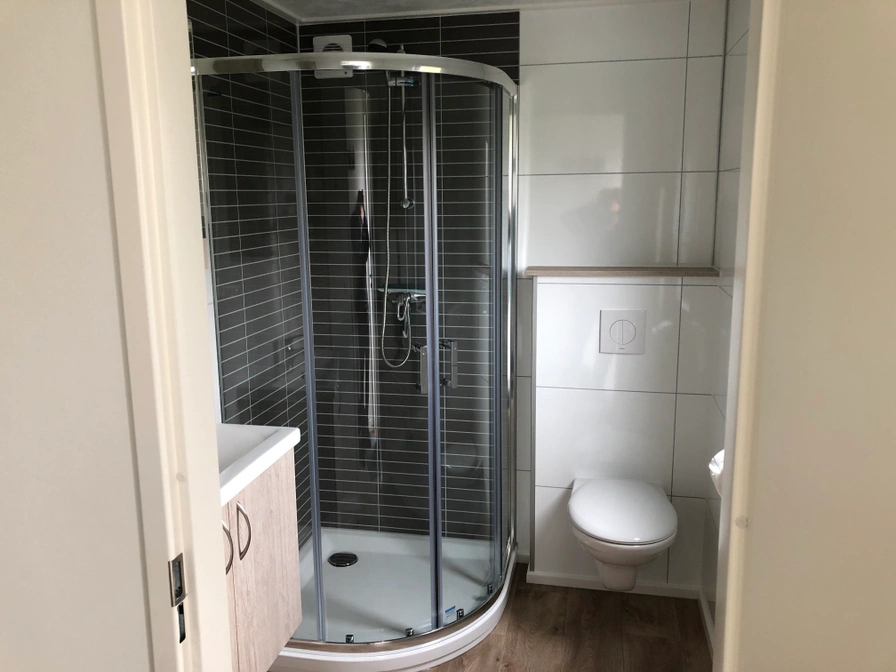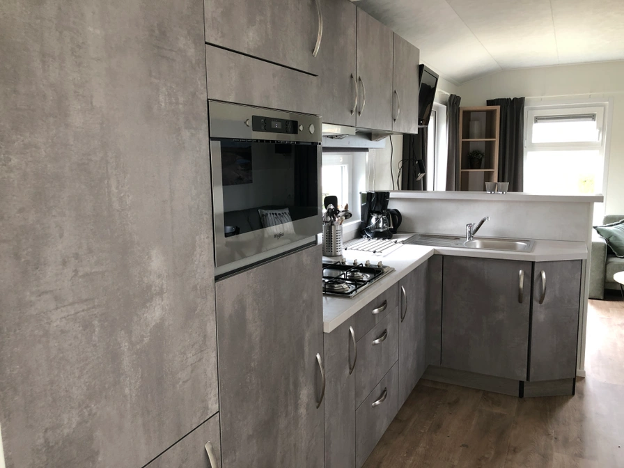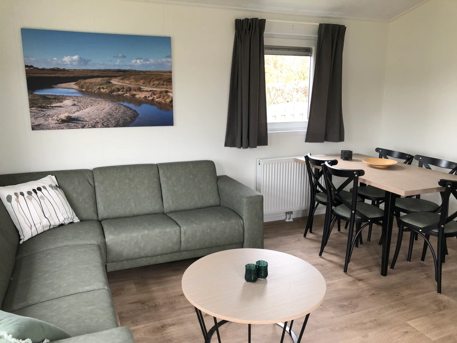 In de woonkamer van het chalet staan een bank, een flatscreen tv en een eethoek. De open keuken is ingericht met een 4-pits gaskookplaat, koelkast met vriesvak, magnetron, filter koffiezetapparaat en waterkoker. Er zijn twee slaapkamers waarvan één met een tweepersoons boxspringbed (2 matrassen van 80x200). In de andere slaapkamer staat een éénpersoons bed en een stapelbed waarvan beide bedden opklapbaar zijn. De ruime badkamer is uitgerust met douche, wastafel en toilet. Het chalet heeft openslaande deuren naar de tuin en het terras met tuinmeubilair. In de tuin staat een schuurtje.
