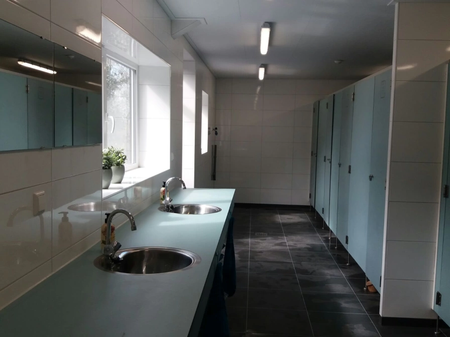 De ruim opgezette kampeerplekken zijn voorzien van stroom (8 ampère). Het sanitairgebouw met vloerverwarming bestaat uit drie douches, drie wasbakken, drie toiletten, een urinoir, een wascabine en een wasmachine. Aan de buitenkant van het sanitair is afwasgelegenheid. Er is een gezamenlijke binnenruimte met koelkast en magnetron.