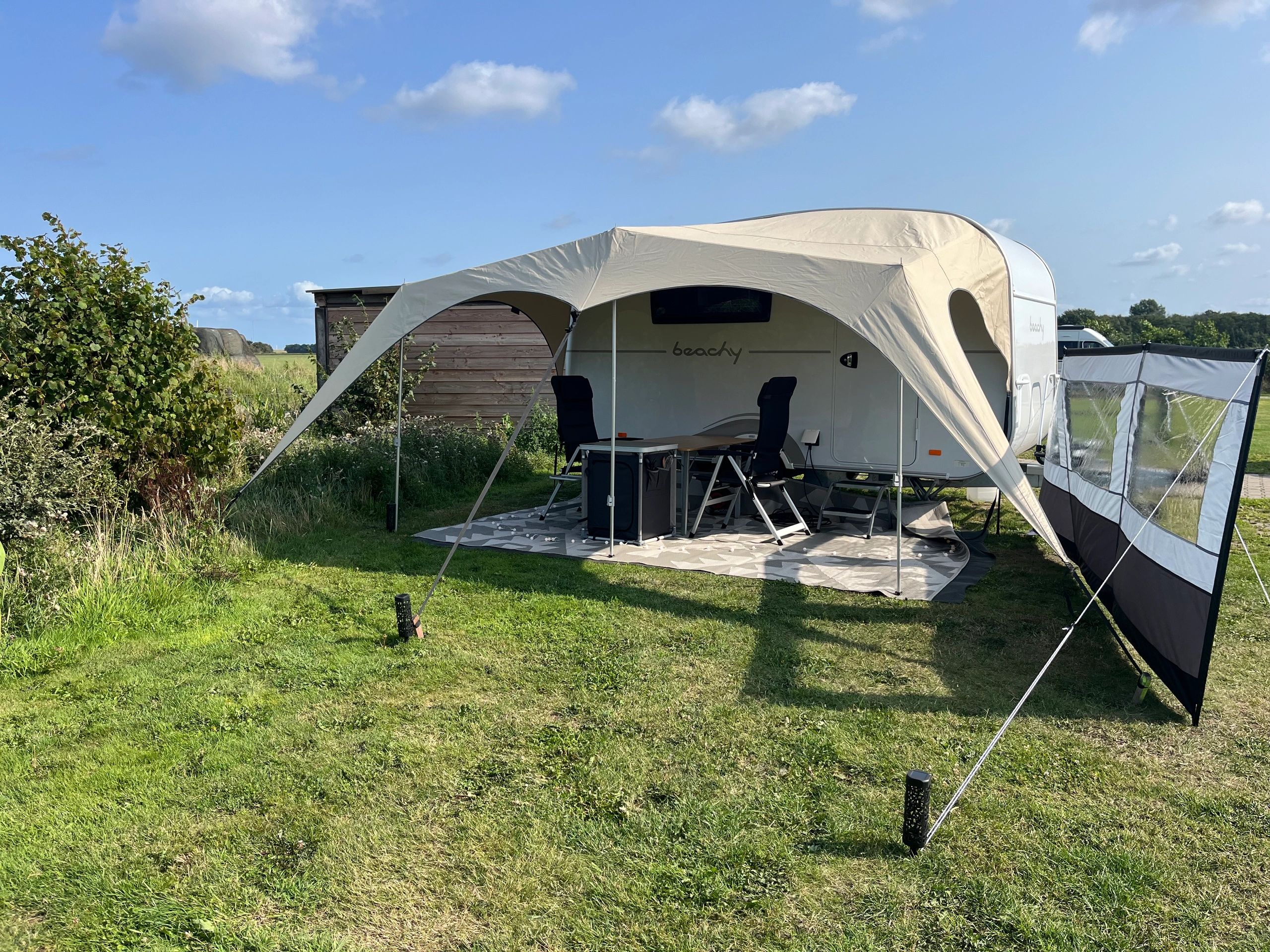 De caravan staat op het terrein van de kleinschalige boerderijcamping Don Voorzorg en heeft geen eigen sanitair. Je maakt gebruik van de gemeenschappelijke sanitaire voorzieningen op de camping. De Hobby 'Beachy' is geschikt voor maximaal twee personen en is huisdier- en rookvrij. Minimum leeftijd is 21+. Uiteraard is 1 ouder en 1 kind combinatie ook mogelijk.