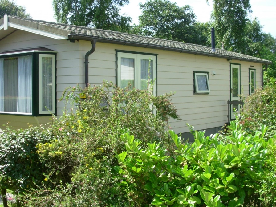 De woonkamer heeft een zithoek met tv en een eethoek. De open keuken is ingericht met een vaatwasser, koelkast met vriesvak, magnetron, waterkoker en koffiezetapparaat. Er zijn twee slaapkamers, waarvan één met tweepersoons bed. In de andere slaapkamer staan 2 eenpersoons bedden. De badkamer heeft een douche en toilet. Het chalet heeft een tuin. Tuinmeubilair is aanwezig.