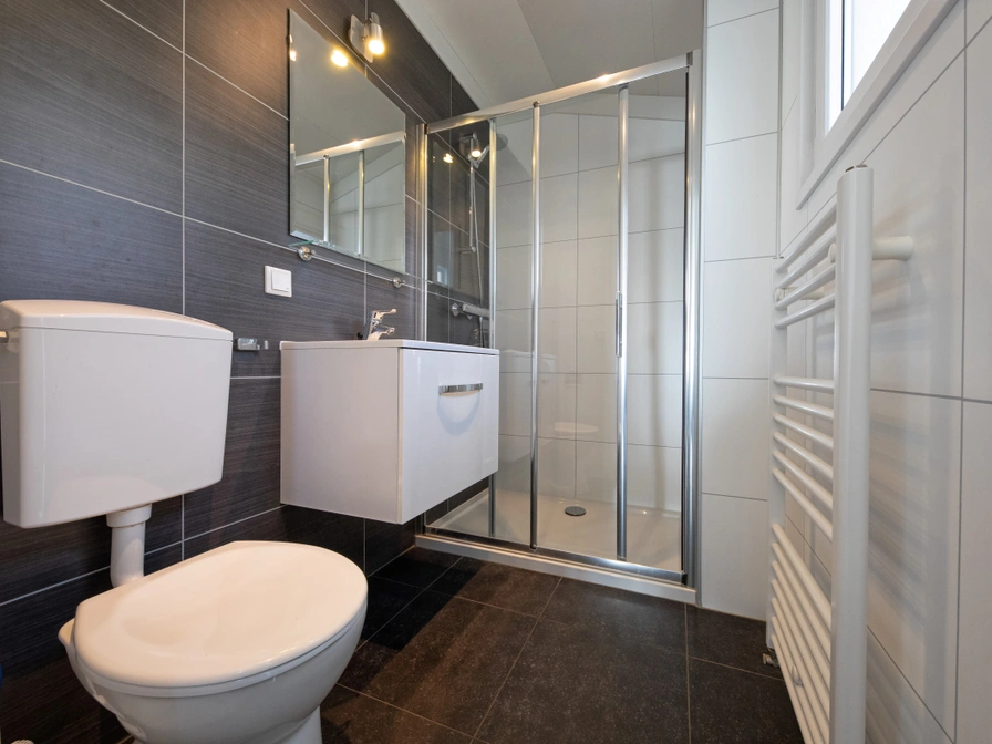 De woonkamer heeft een zithoek met flatscreen tv en een eethoek. De open keuken is ingericht met een koelkast met vriesvak, combi-oven, vaatwasser, waterkoker en Senseo. Er zijn twee slaapkamers, waarvan een met 2 eenpersoons boxspringbedden (80 x 200). De andere slaapkamer heeft 1 eenpersoons boxspringbed (80 x 200) en 1 stapelbed (80 x 200). Er is een badkamer met douche, wastafel en toilet. Het chalet heeft een terras en eigen parkeerplaats. Tuinmeubilair is aanwezig.