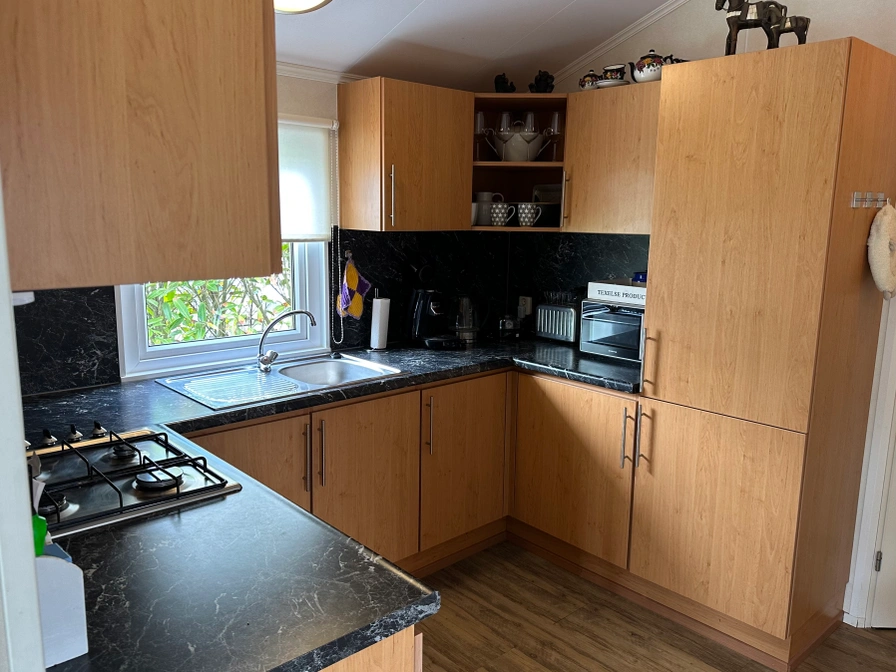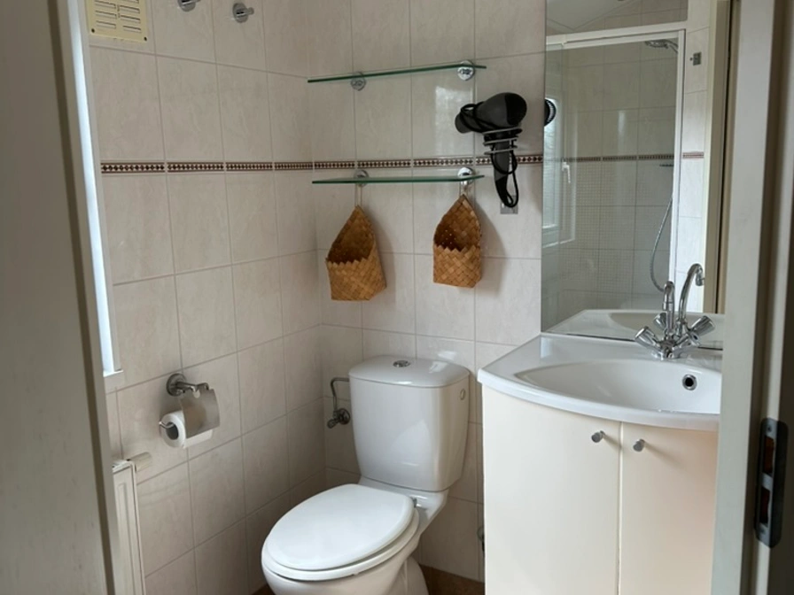 Entree, gezellige woonkamer met een ruime bank en een lekkere luie stoel, eettafel met vier comfortabele stoelen, open keuken met oven, 4-pits gasstel, koelkast en vriezer. Twee slaapkamers (één met een tweepersoonsbed en één met een eenpersoonsbed). Badkamer met inloopdouche, toilet en wastafel. Ruime tuin met een grasveld en een eigen parkeerplaats. Achter het chalet, achter een hek, ligt nog een extra stukje tuin met fijne ligbedden en een tuintafel.